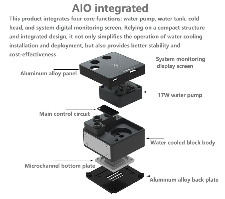 Comprar BARROW AIO CPU-Pantalla de monitoreo de bomba de agua integrada, depósito de tanque de agua, 17W, para Intele115X 1200 1700