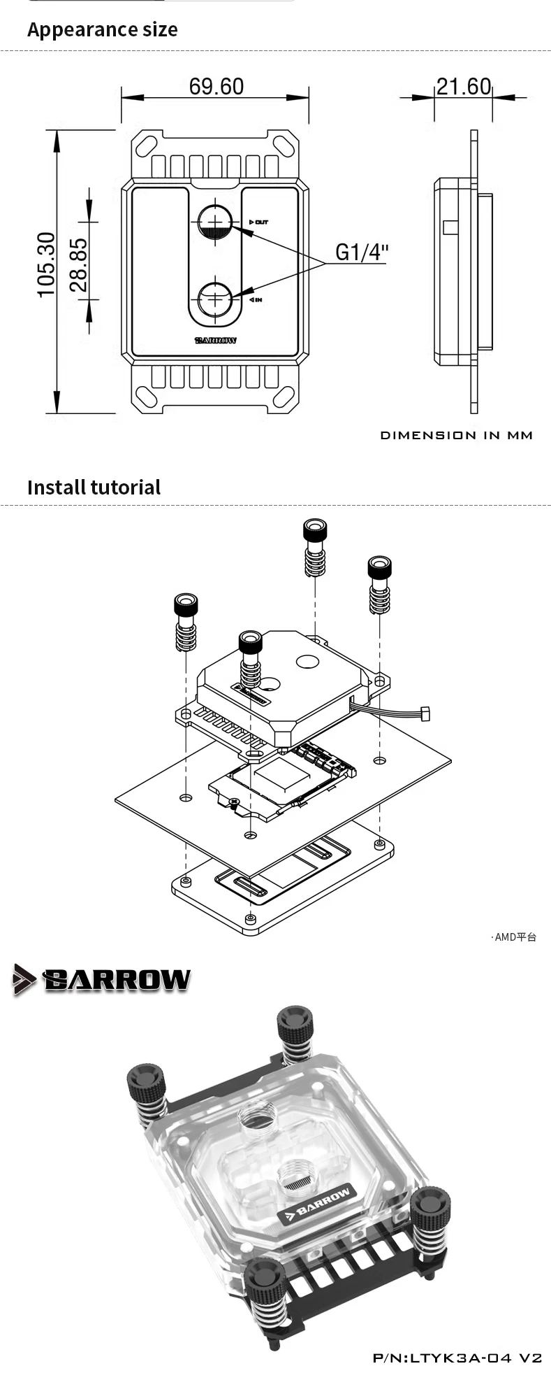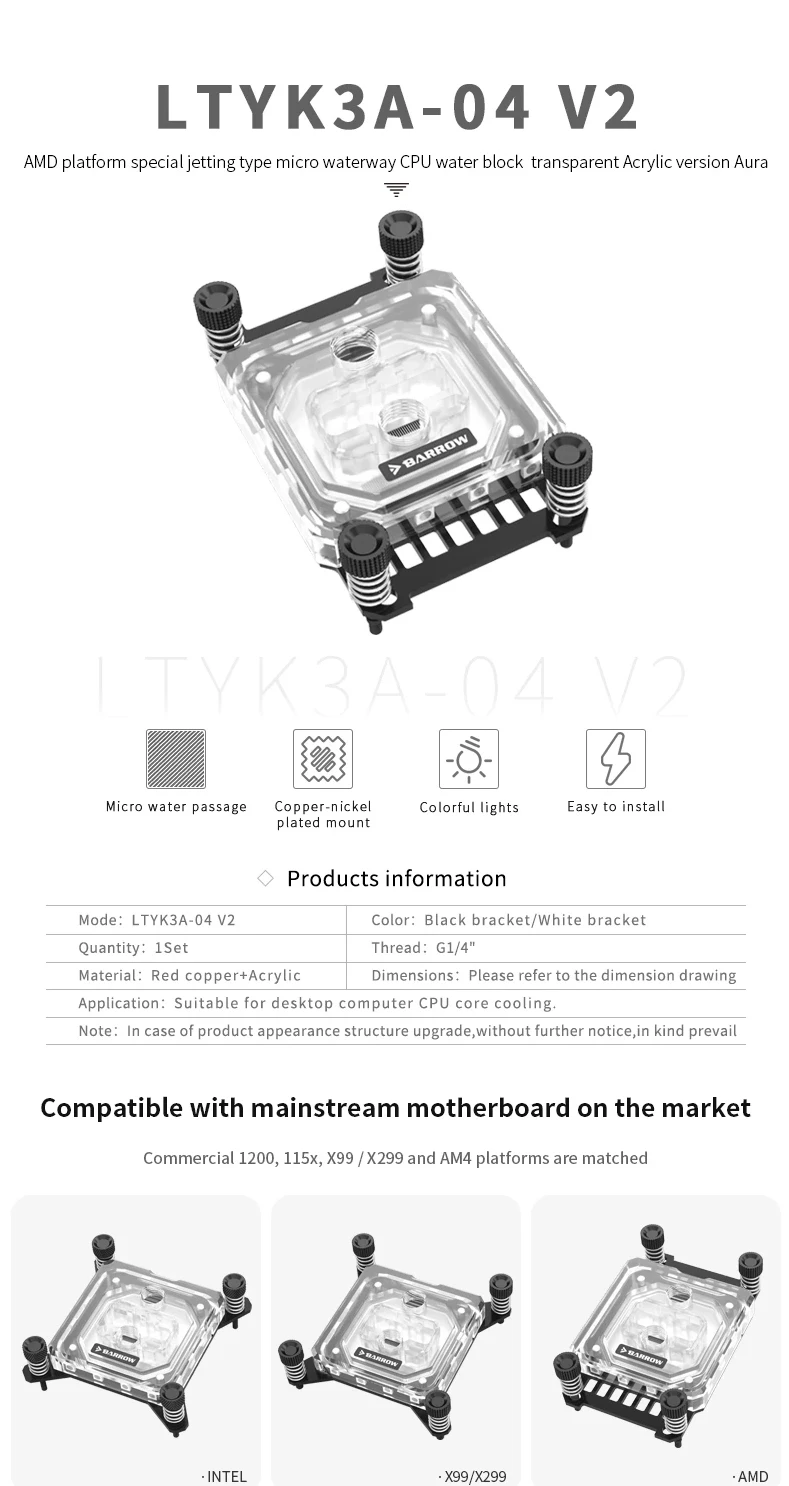 Comprar Barrow bloque de agua de CPU para Intel Lga1700/1200/115x/x99/X299/ AMD AM4 AM5, microcorte acrílico, bloque de refrigeración de agua de microvía