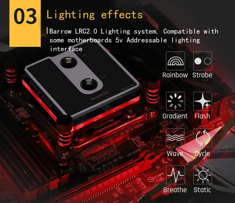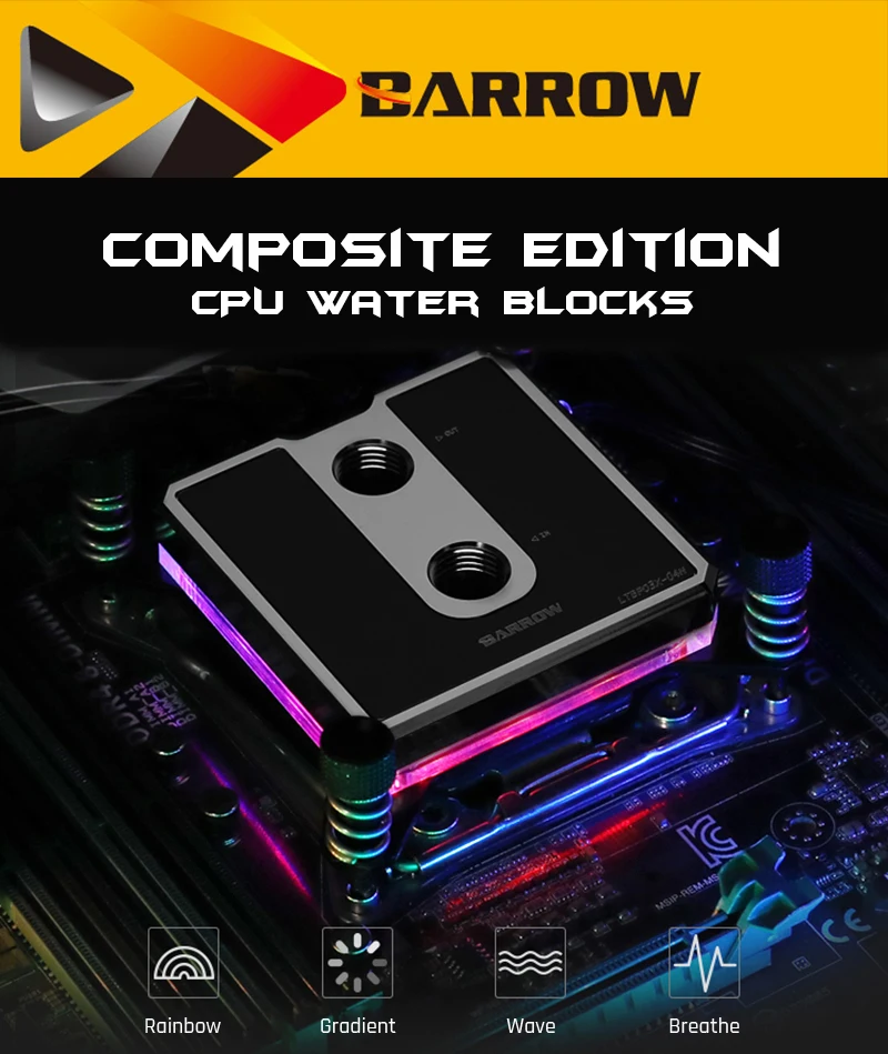 Barrow-bloque de agua para CPU, microvía de chorro para Intel LGA115X 1200 1700/INTELX99/X299, radiador 5v, 3 pines, ARGB, iluminación AURA SYNC