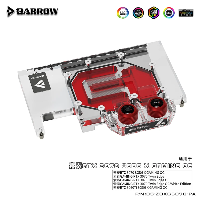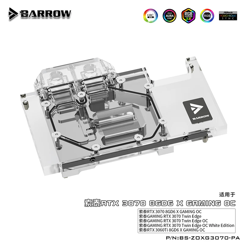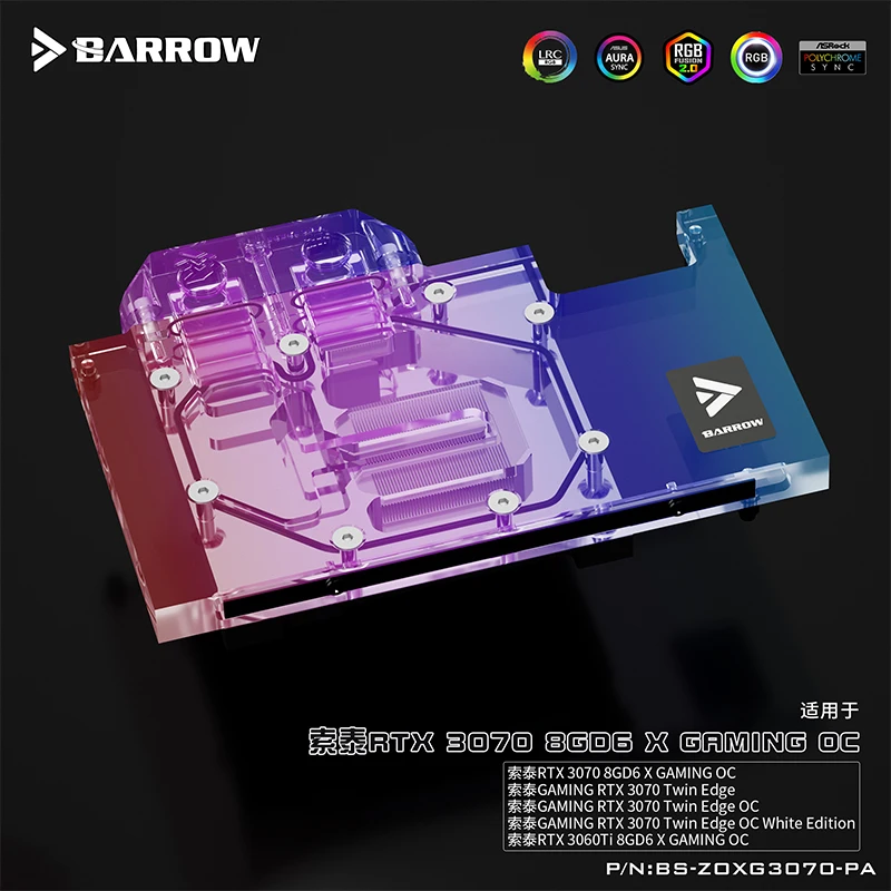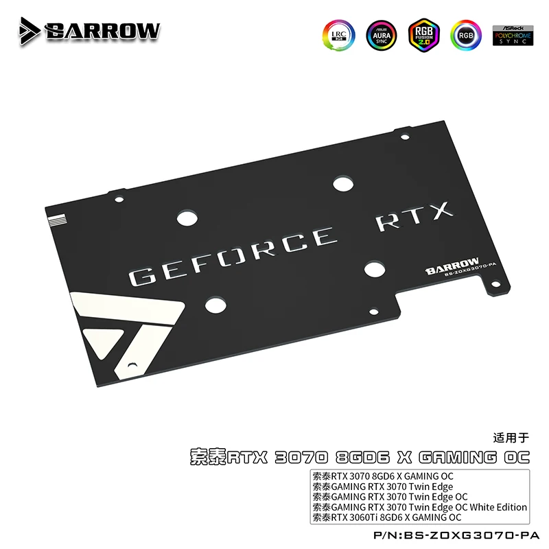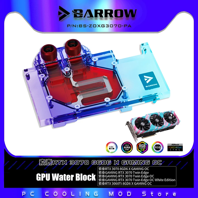 Comprar Barrow-bloque de agua frontal VGA para tarjeta gráfica ZOTAC Geforce RTX 3070 X-GAMING OC, GPU Cooler 5V + placa negra, BS-ZOXG3070-PA