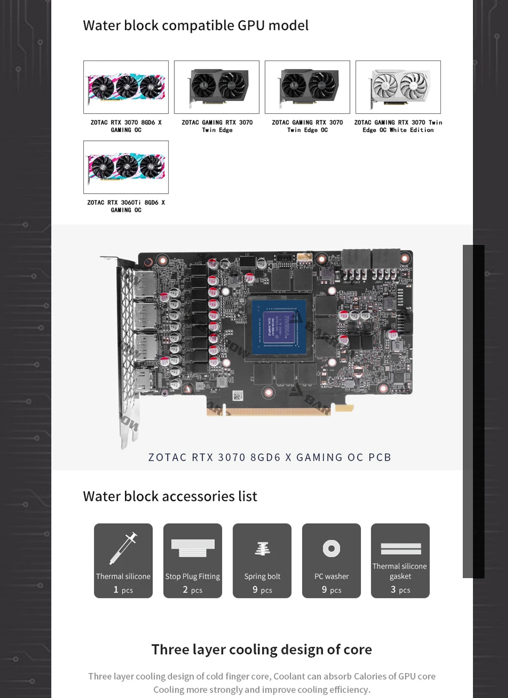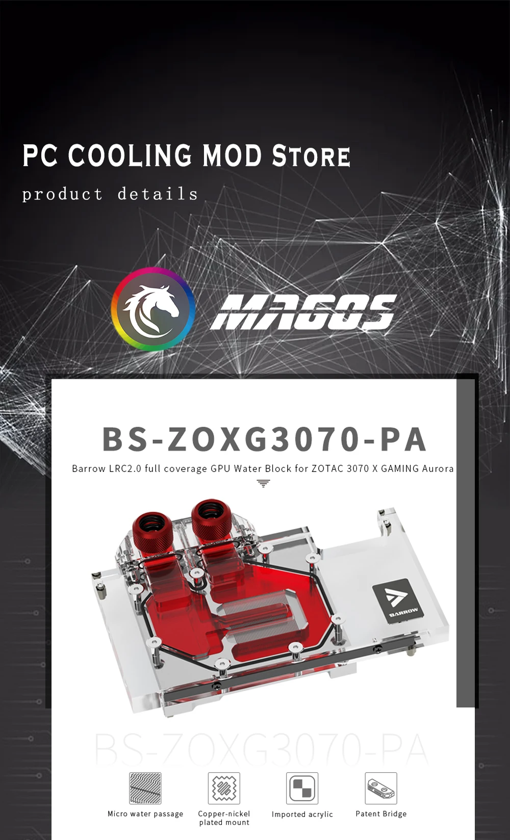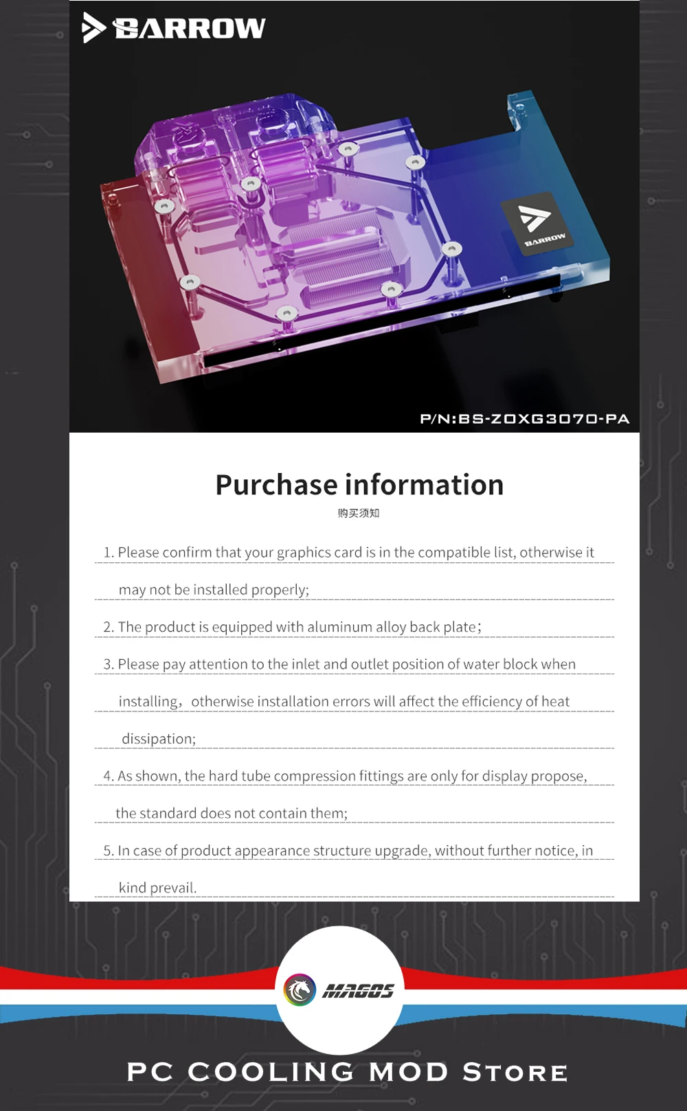 Comprar Barrow-bloque de agua frontal VGA para tarjeta gráfica ZOTAC Geforce RTX 3070 X-GAMING OC, GPU Cooler 5V + placa negra, BS-ZOXG3070-PA