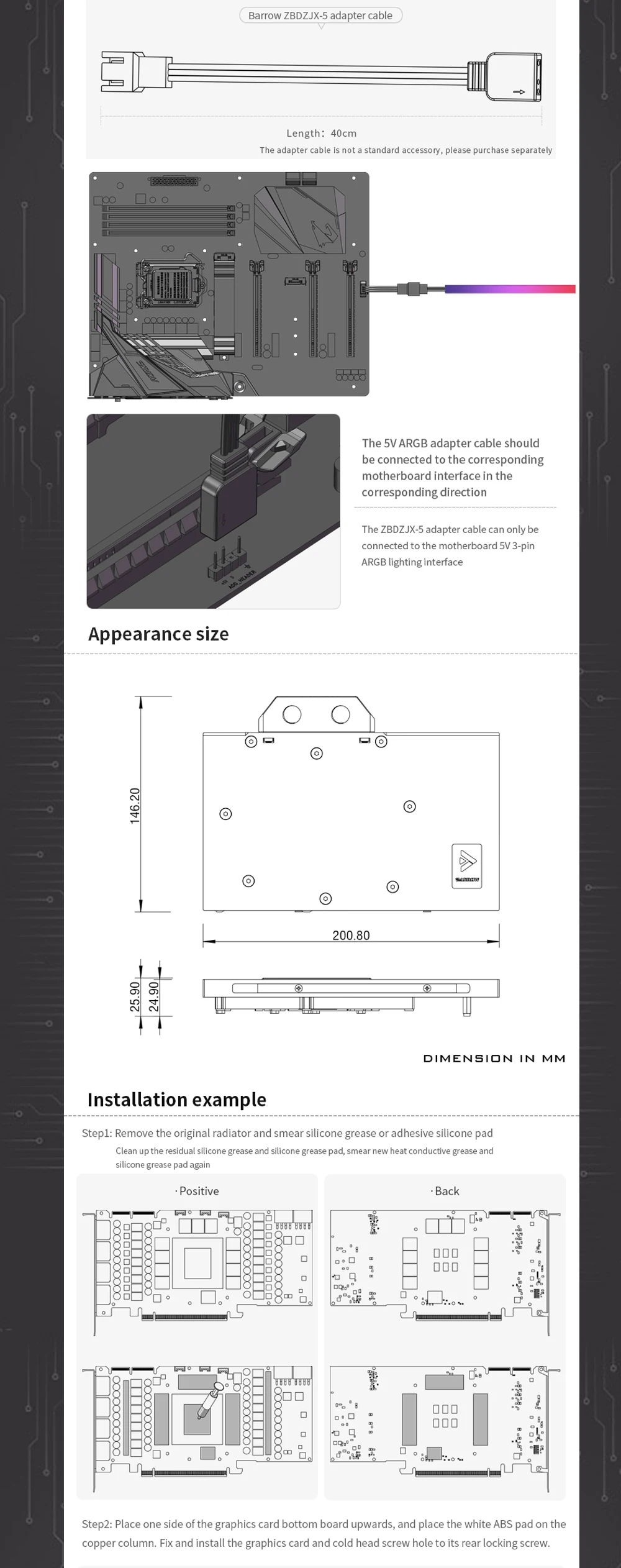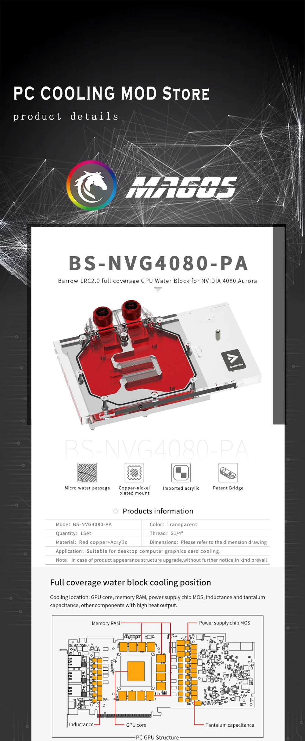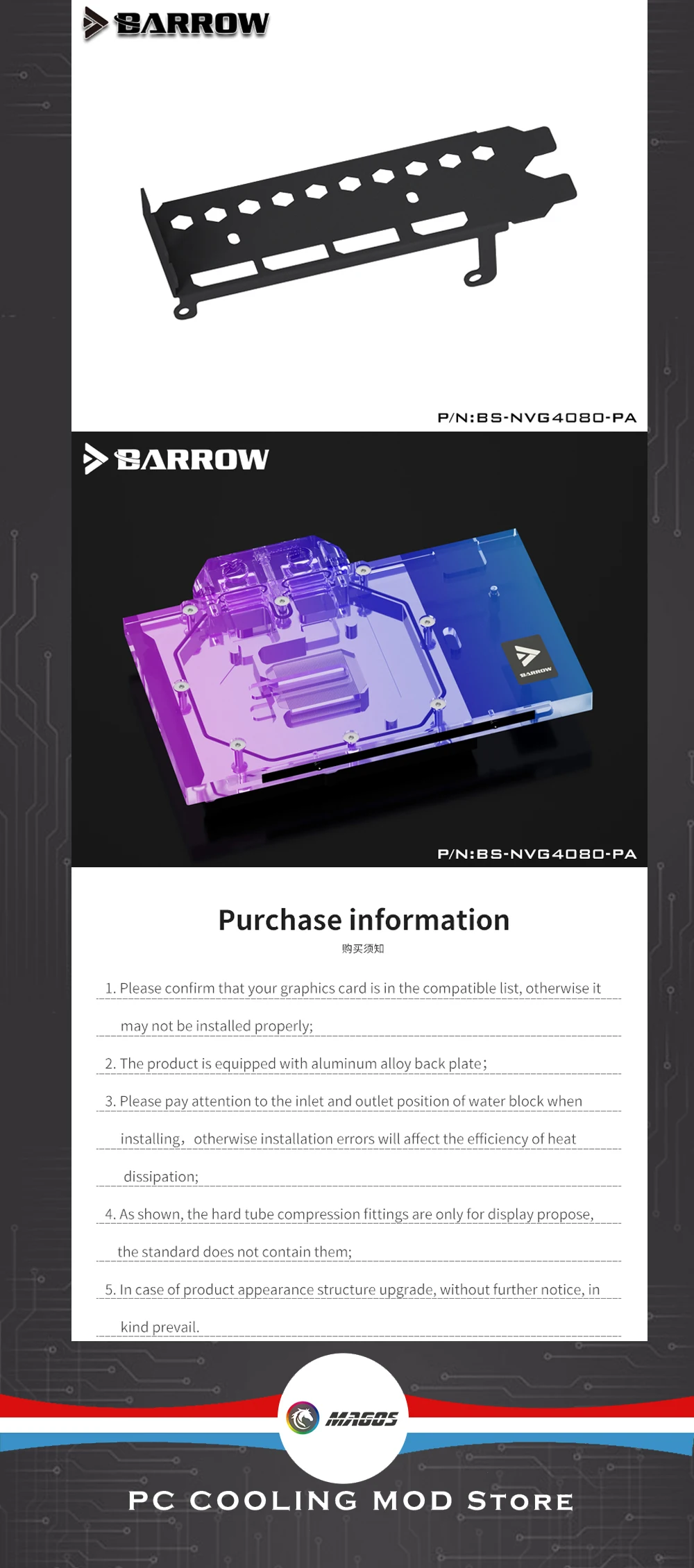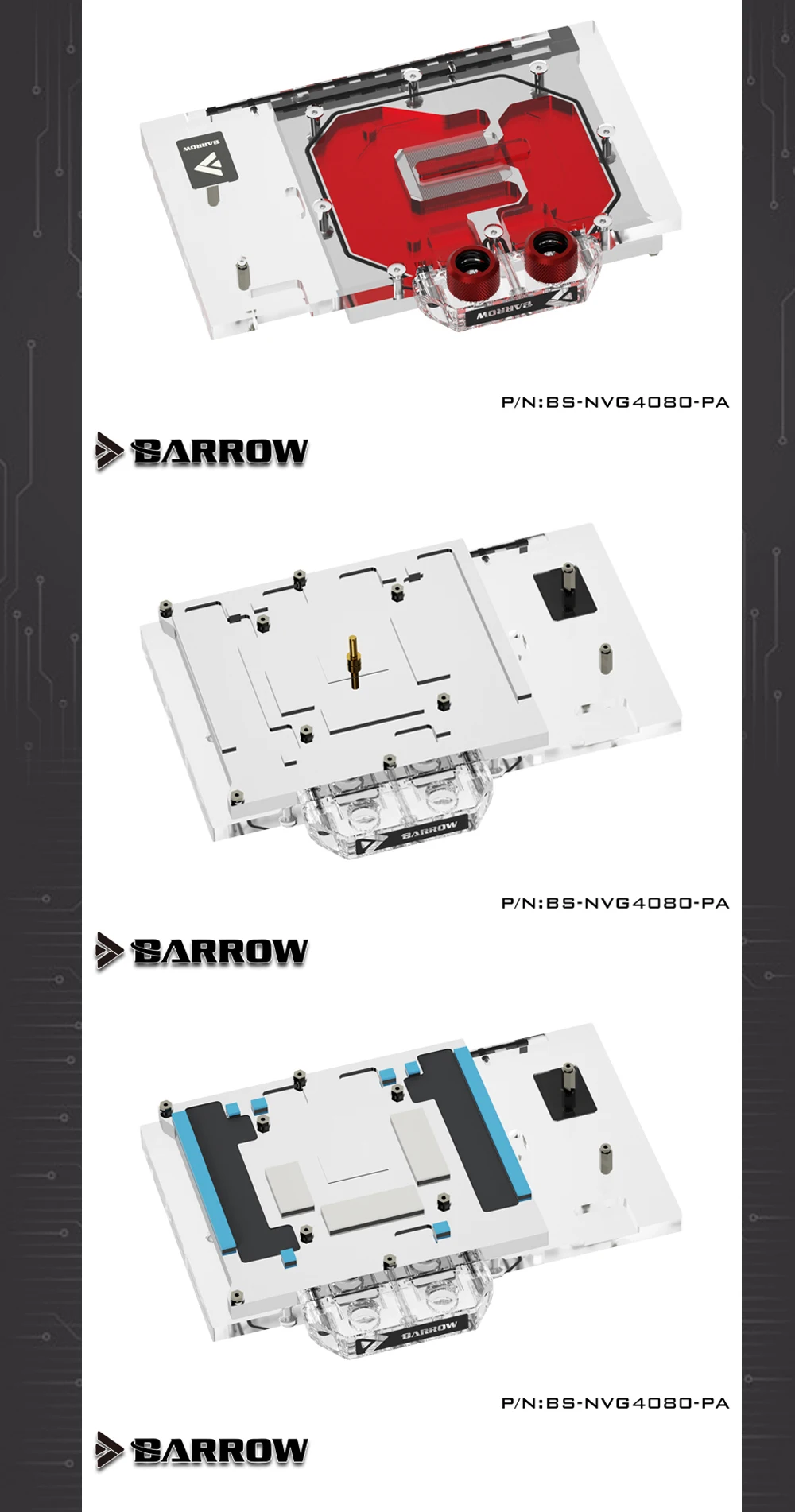 Comprar Barrow-bloque de agua de GPU 4080 para NVIDIA RTX 4080, Enfriador de tarjetas VGA con placa trasera, 5V, 3 pines, BS-NVG4080-PA