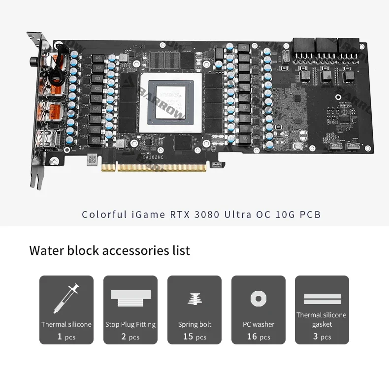 Comprar Barrow bloque de agua GPU de cobertura completa para iGame RTX 3090 Advanced OC,3080 Advanced/Ultra OC 10G, 5V ARGB 3PIN AURA SYNC