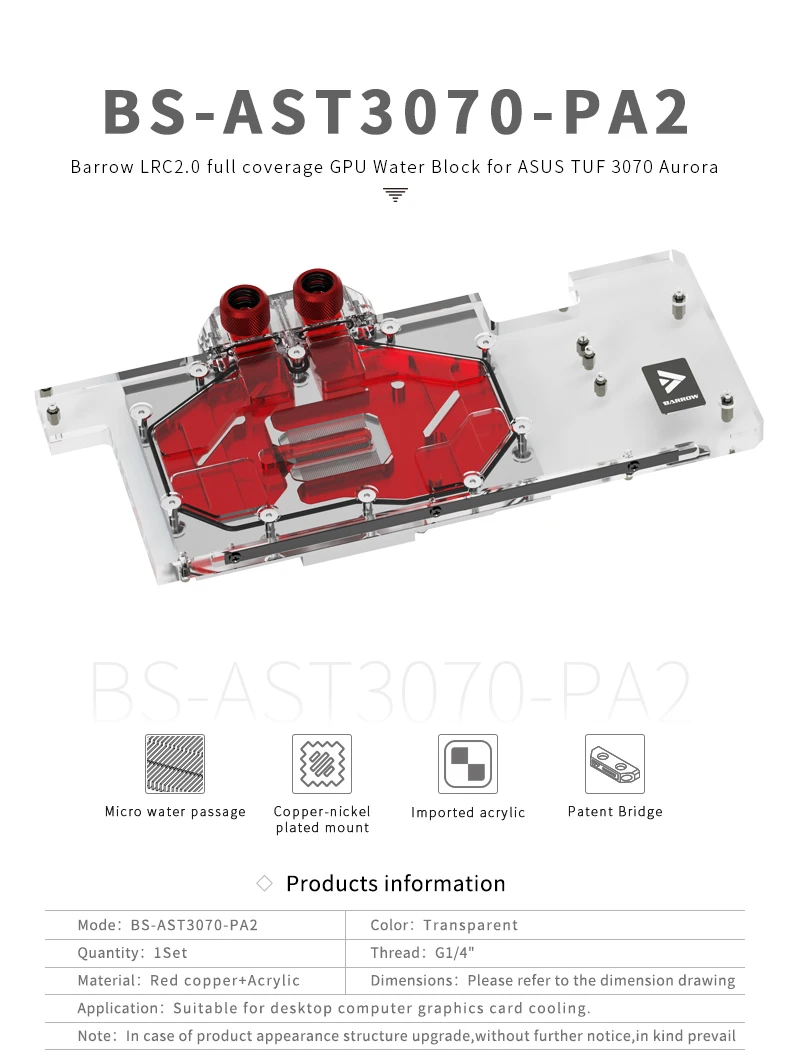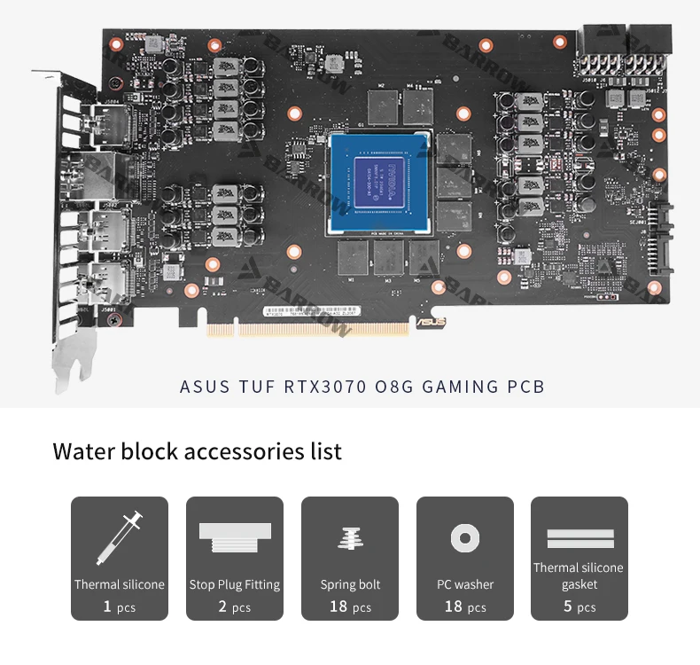 Comprar Barrow-bloque de agua GPU de cobertura completa LRC2.0 para ASUS TUF 3070 Aurora,5V ARGB GPU Cooler,BS-AST3070-PA2