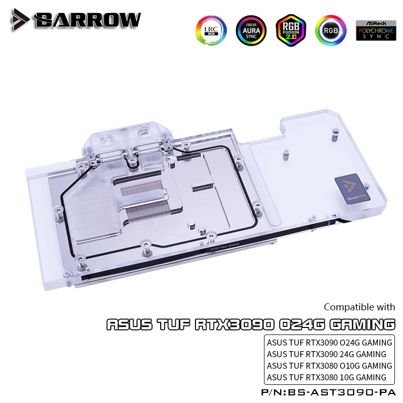 Comprar Barrow-bloque de agua GPU de cobertura completa, placa base AURA SYNC, BS-AST3090-PA, para VGA, ASUS TUF 3090, 5V, ARGB, 3 pines