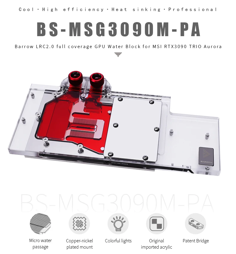 Comprar Barrow-bloque de agua GPU de cobertura completa para VGA MSI RTX3090/3080 Ti GAMING/sofim Cooler 5V ARGB 3PIN Motherboard AURA SYNC