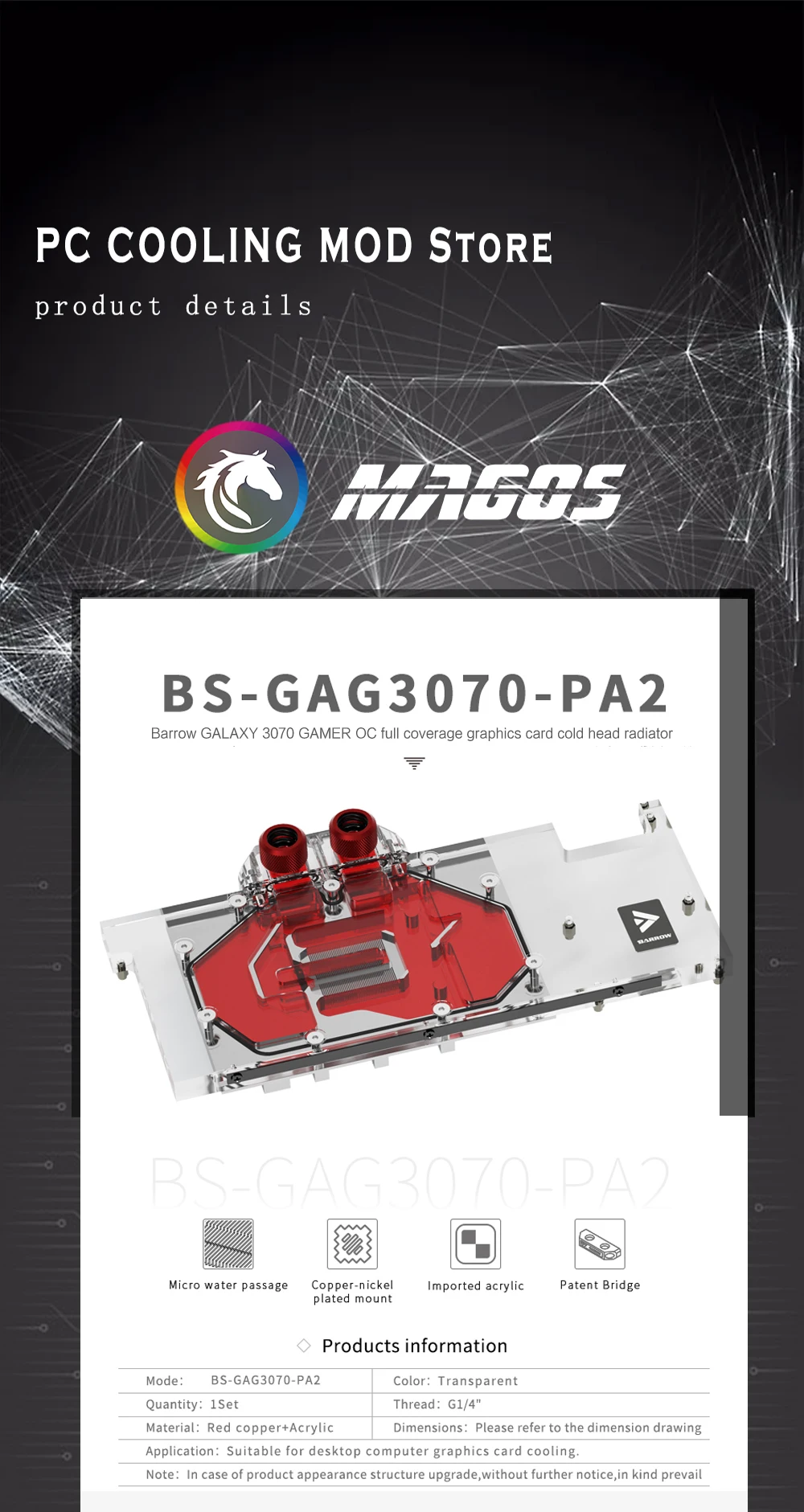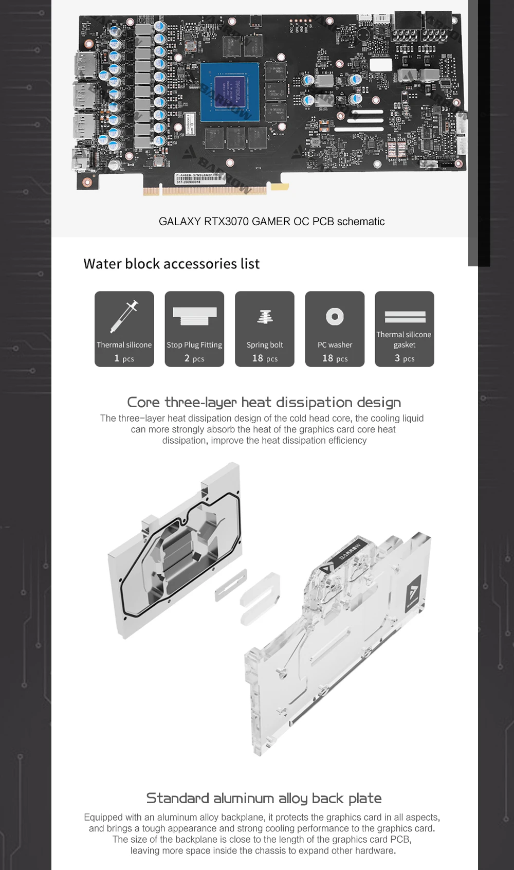 Barrow GPU bloque de agua para GALAX 3070, cubierta completa 5V ARGB enfriador de tarjeta gráfica, refrigeración CP, placa base AURA SYNC BS-GAG3070-PA2