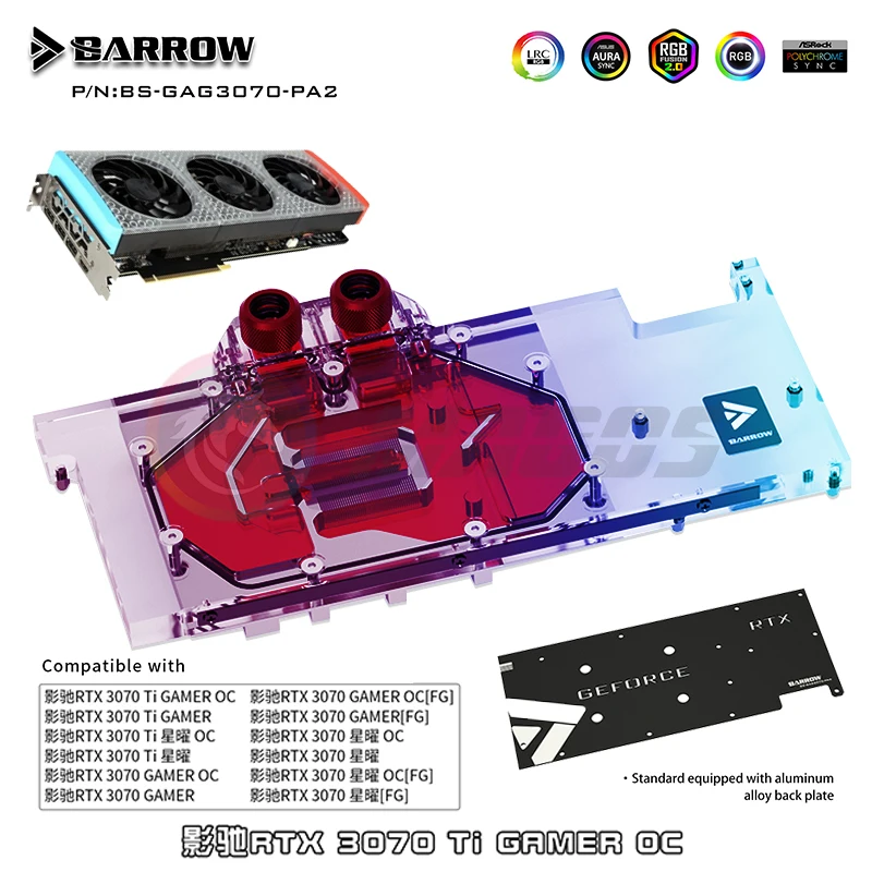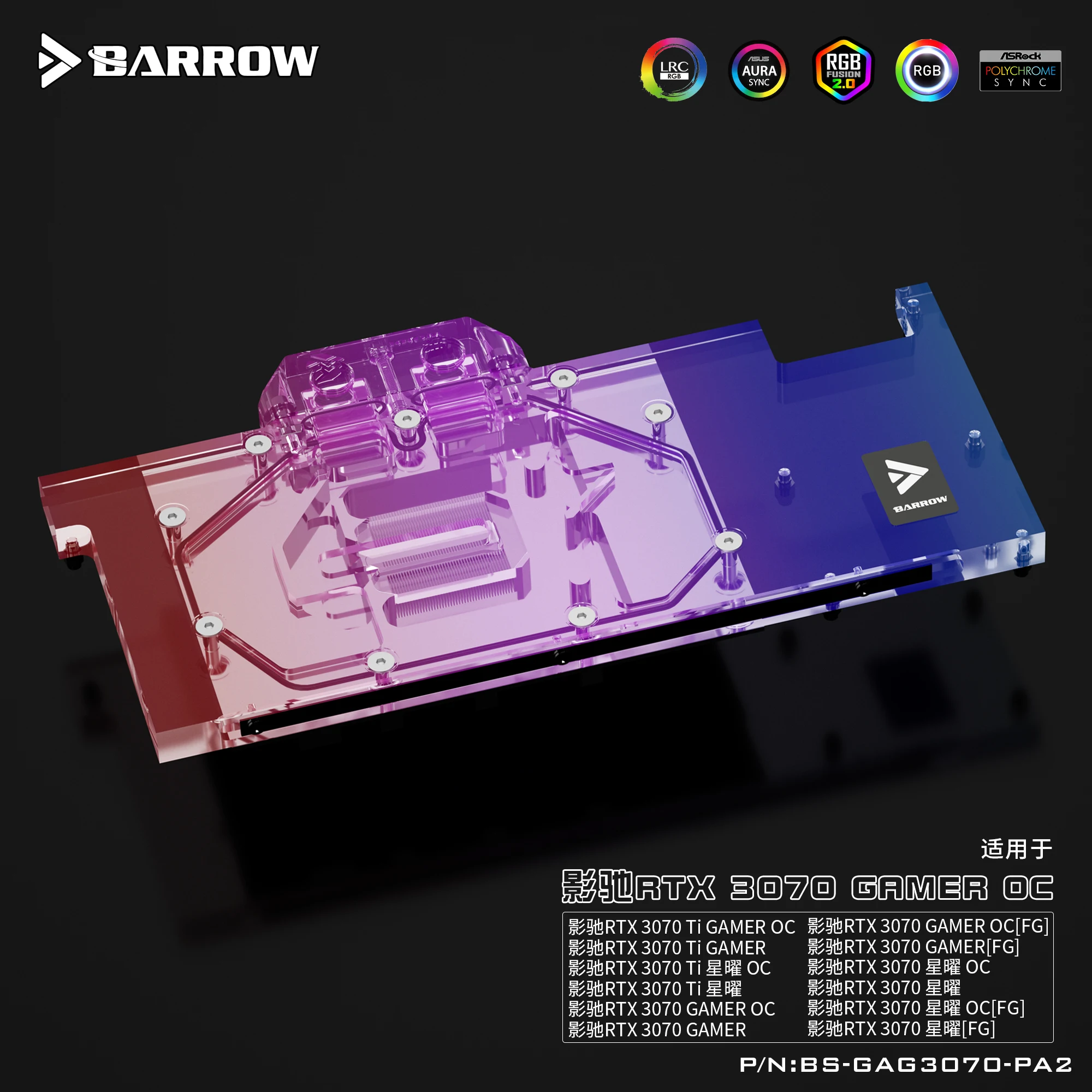 Barrow GPU bloque de agua para GALAX 3070, cubierta completa 5V ARGB enfriador de tarjeta gráfica, refrigeración CP, placa base AURA SYNC BS-GAG3070-PA2