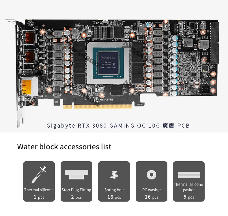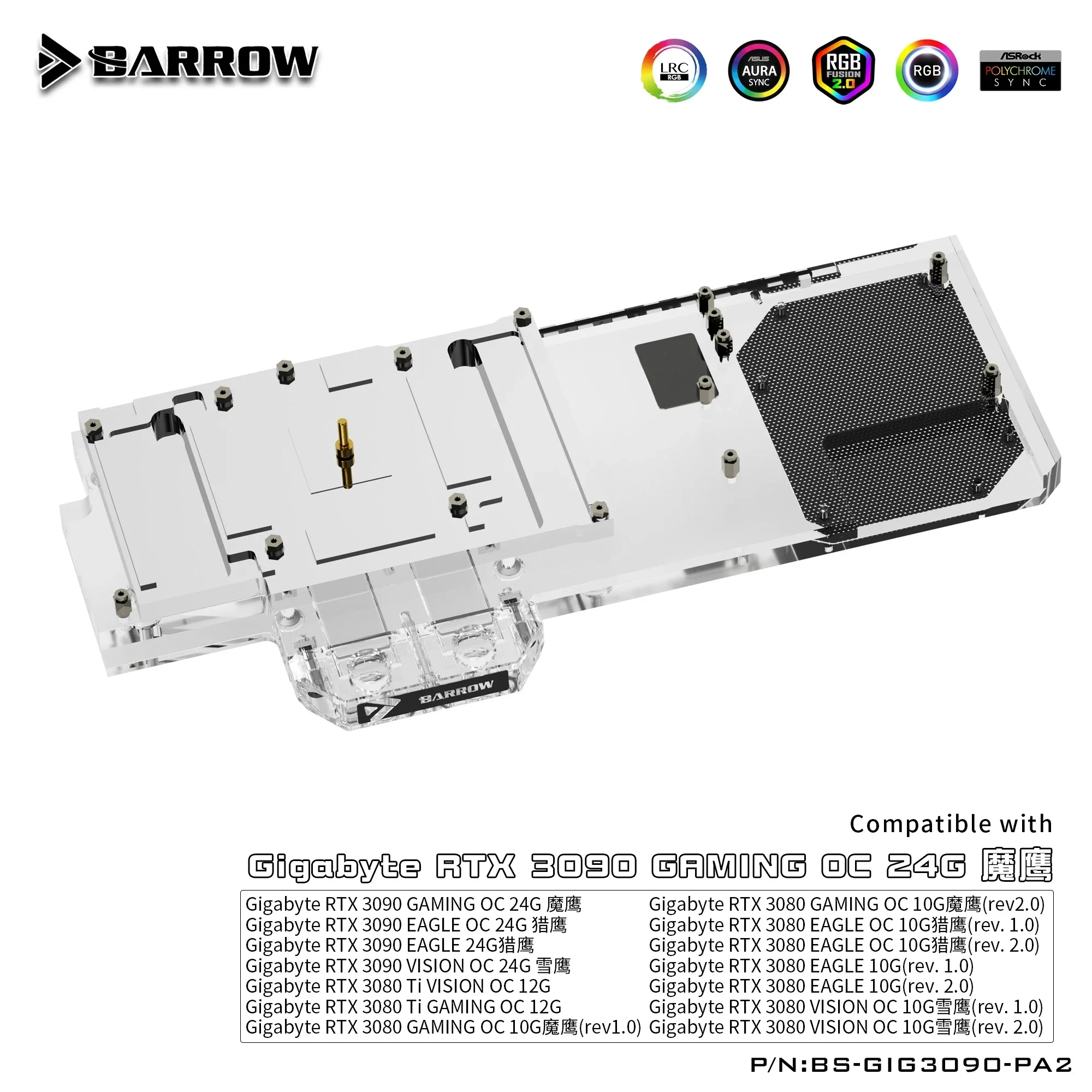 Comprar Barrow-bloque de agua GPU para GIGABYTE 3090 3080Ti 3080 GAMING EAGLE VISION, 5V ARGB 3PIN, placa base AURA SYNC BS-GIG3090-PA2