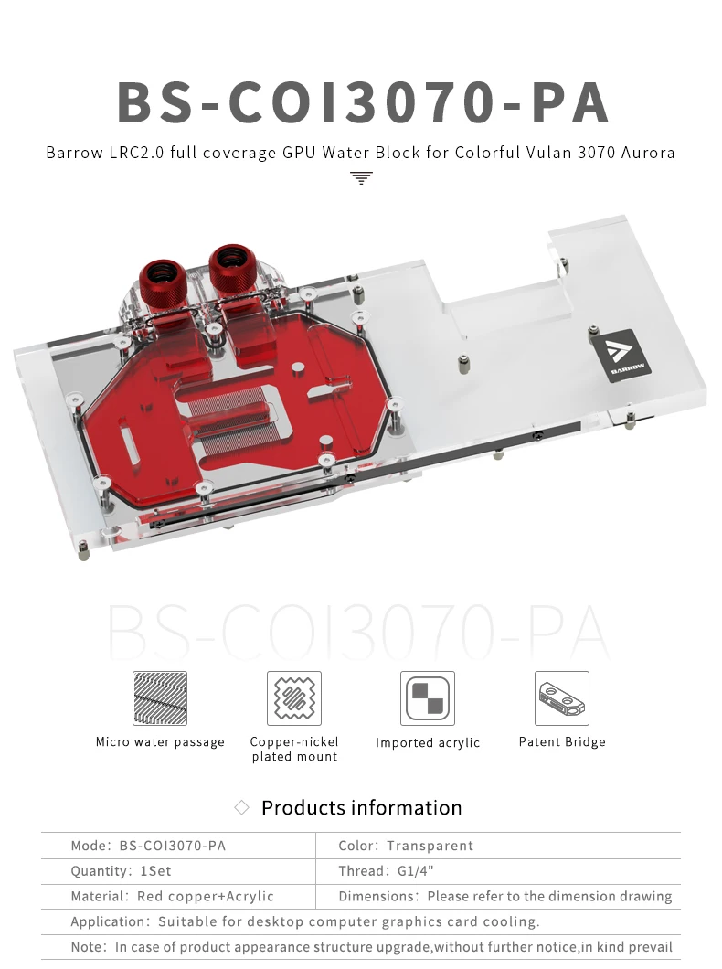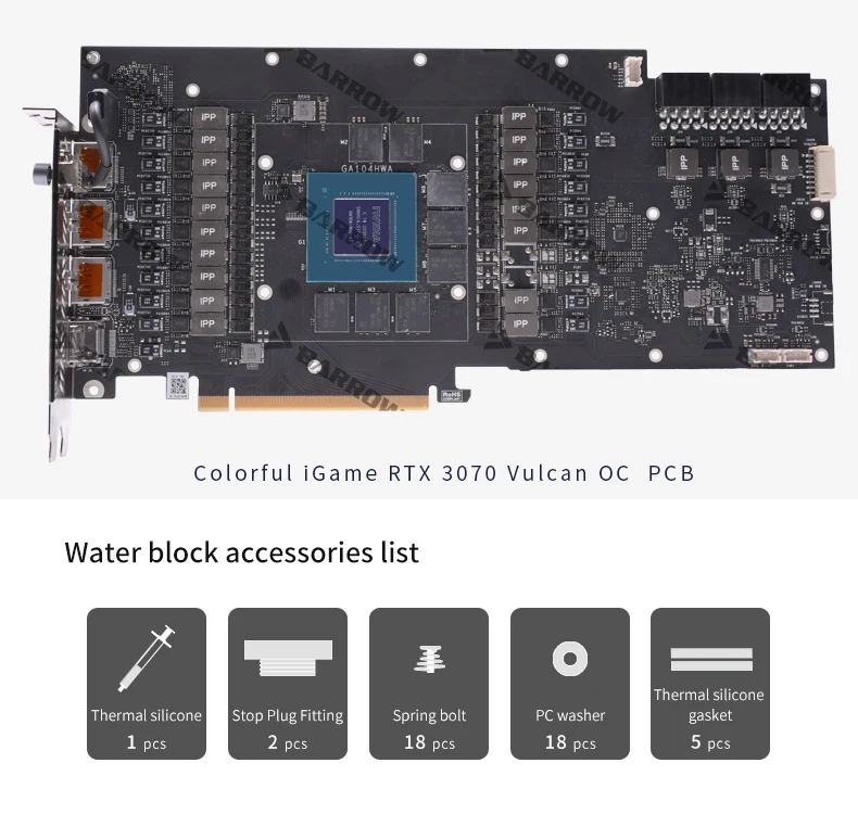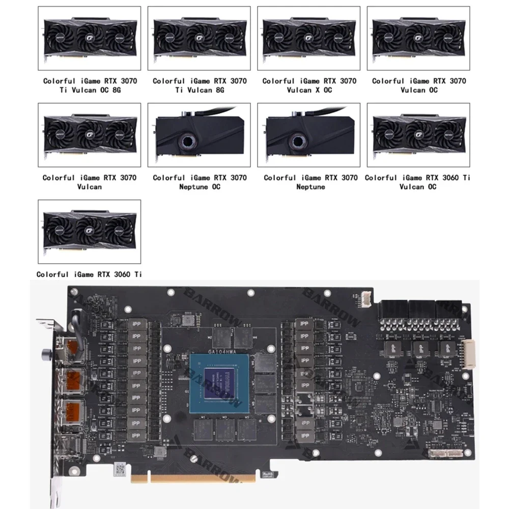 Comprar Barrow-bloque de agua GPU para iGame RTX 3070/3070TI/3060Ti Vulcan, Enfriador de tarjetas gráficas, 5V, ARGB, 3 pines, BS-COI3070-PA