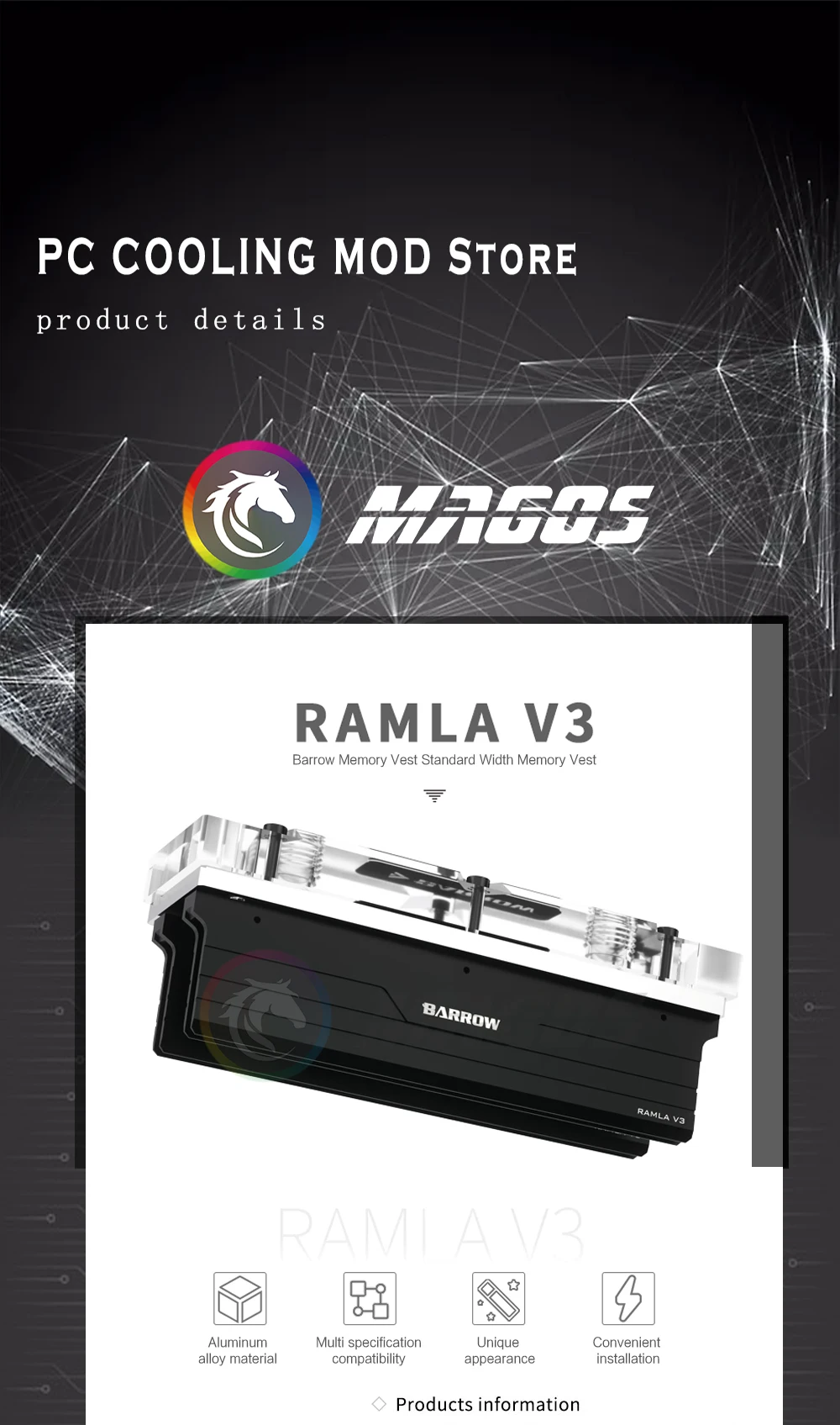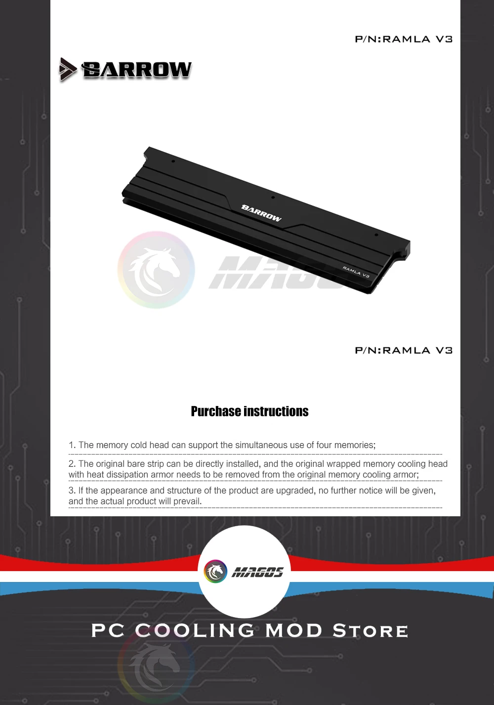 Comprar Barrow-bloque de agua RAM para ordenador, de memoria DDR4 DDR5 disipador de calor, con chaleco de refrigeración, compatible con 2/4 canales, RAMWBT-PA2, RAMLA V3