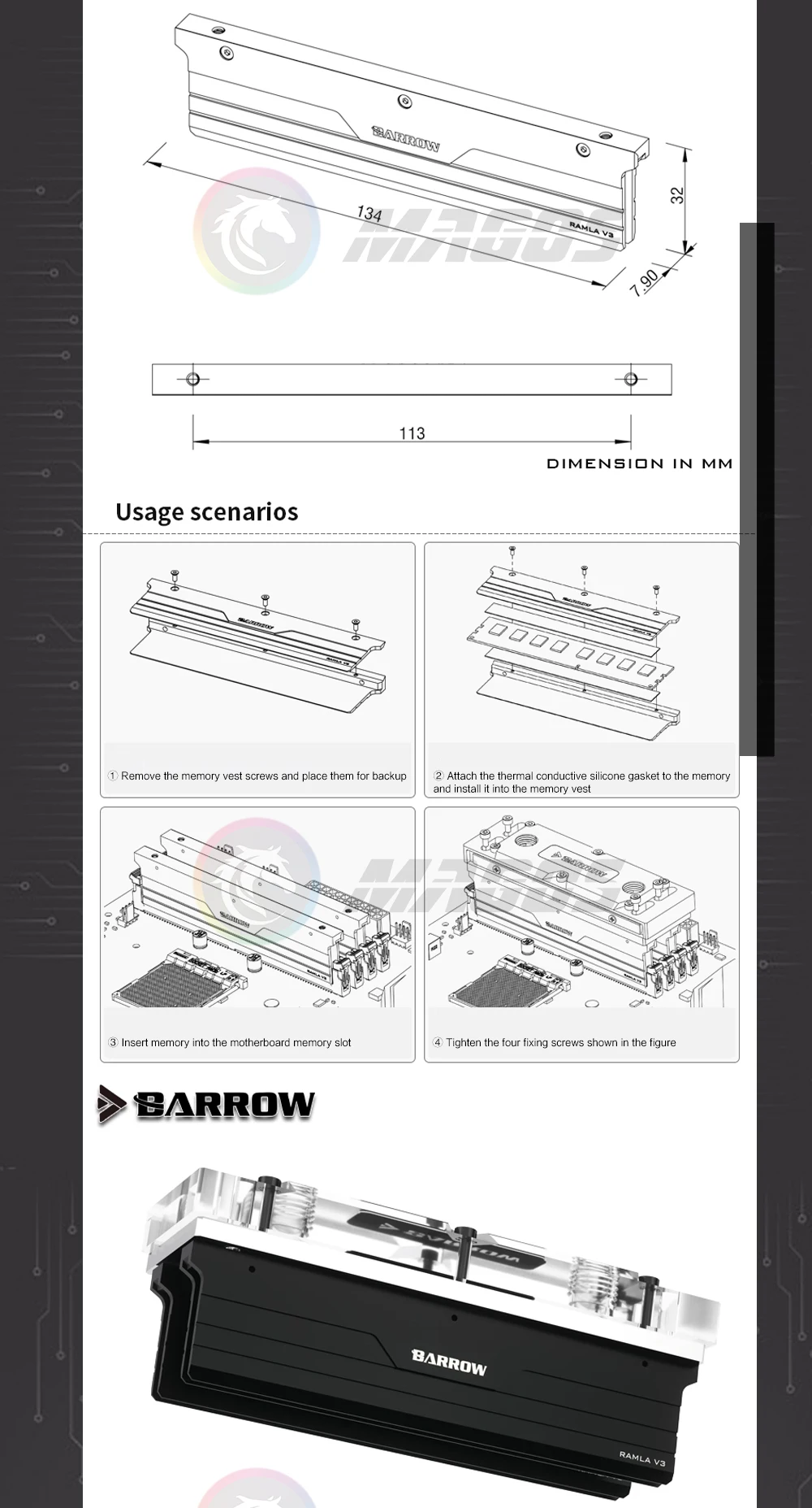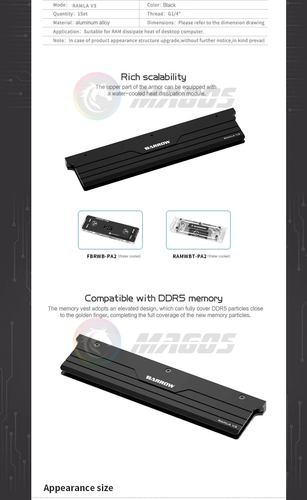 Barrow-bloque de agua RAM para ordenador, de memoria DDR4 DDR5 disipador de calor, con chaleco de refrigeración, compatible con 2/4 canales, RAMWBT-PA2, RAMLA V3