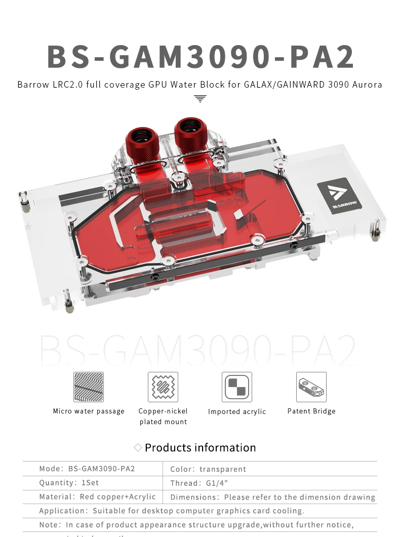 Comprar Barrow-Bloque de GPU para Galaxy/GAINWARD RTX 3090/3080 Ti, Enfriador de tarjetas gráficas, 5V, ARGB, 3 pines, AURA SYNC