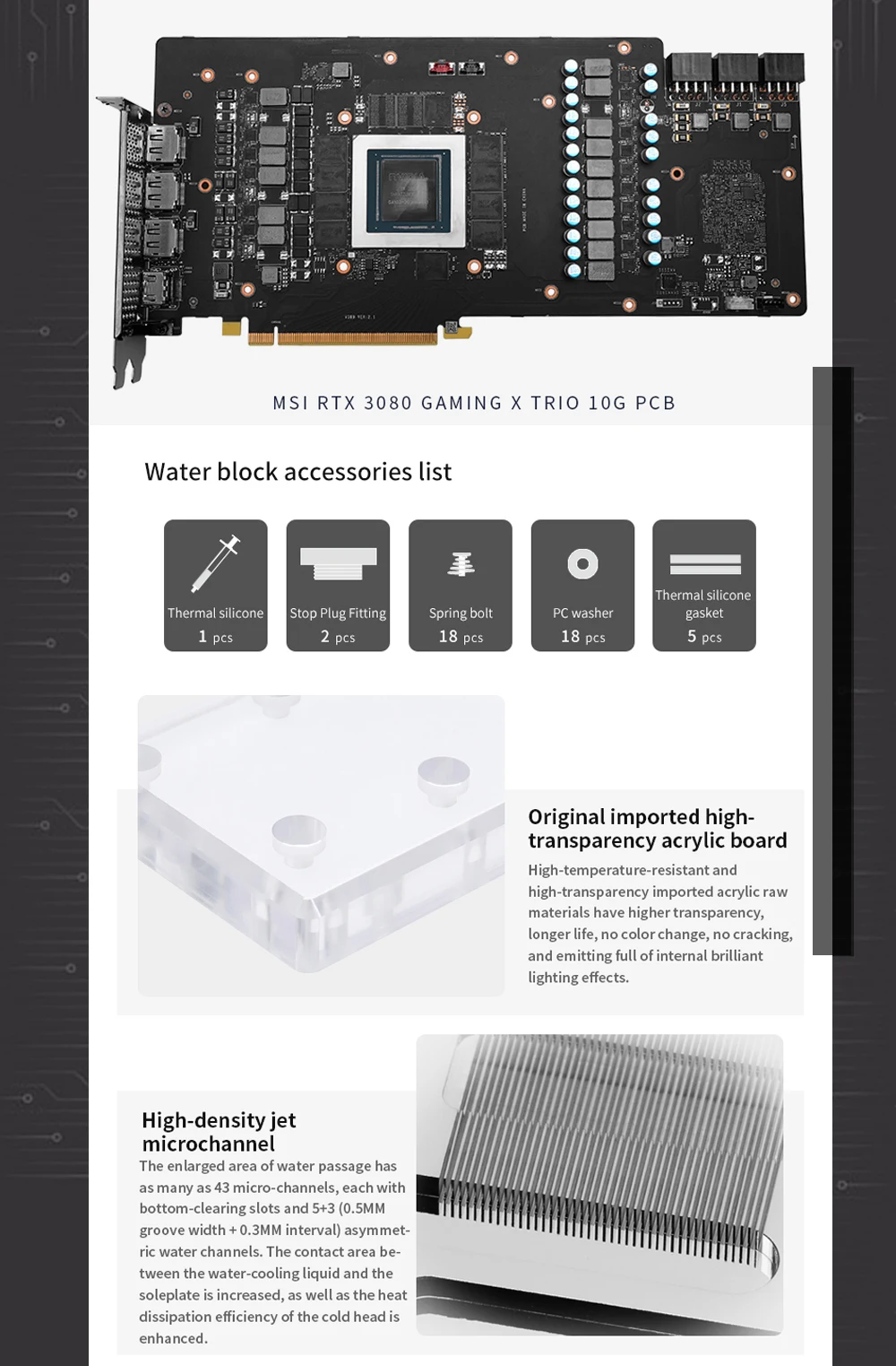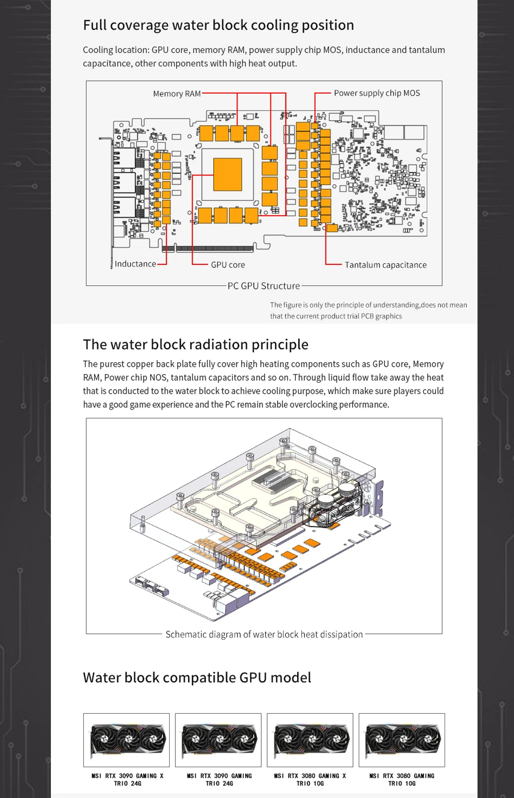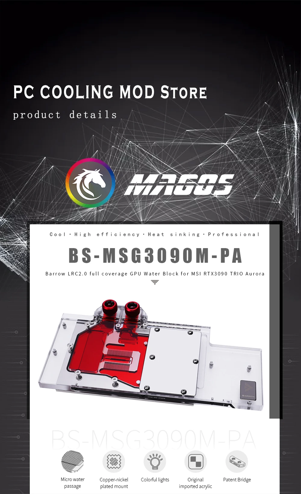 Comprar Barrow-Bloque de GPU para refrigeración por agua, para MSI RTX 3090/3080 GAMING X TRIO VGA Cooler, M/B 5V ARGB SYNC, BS-MSG3090M-PA