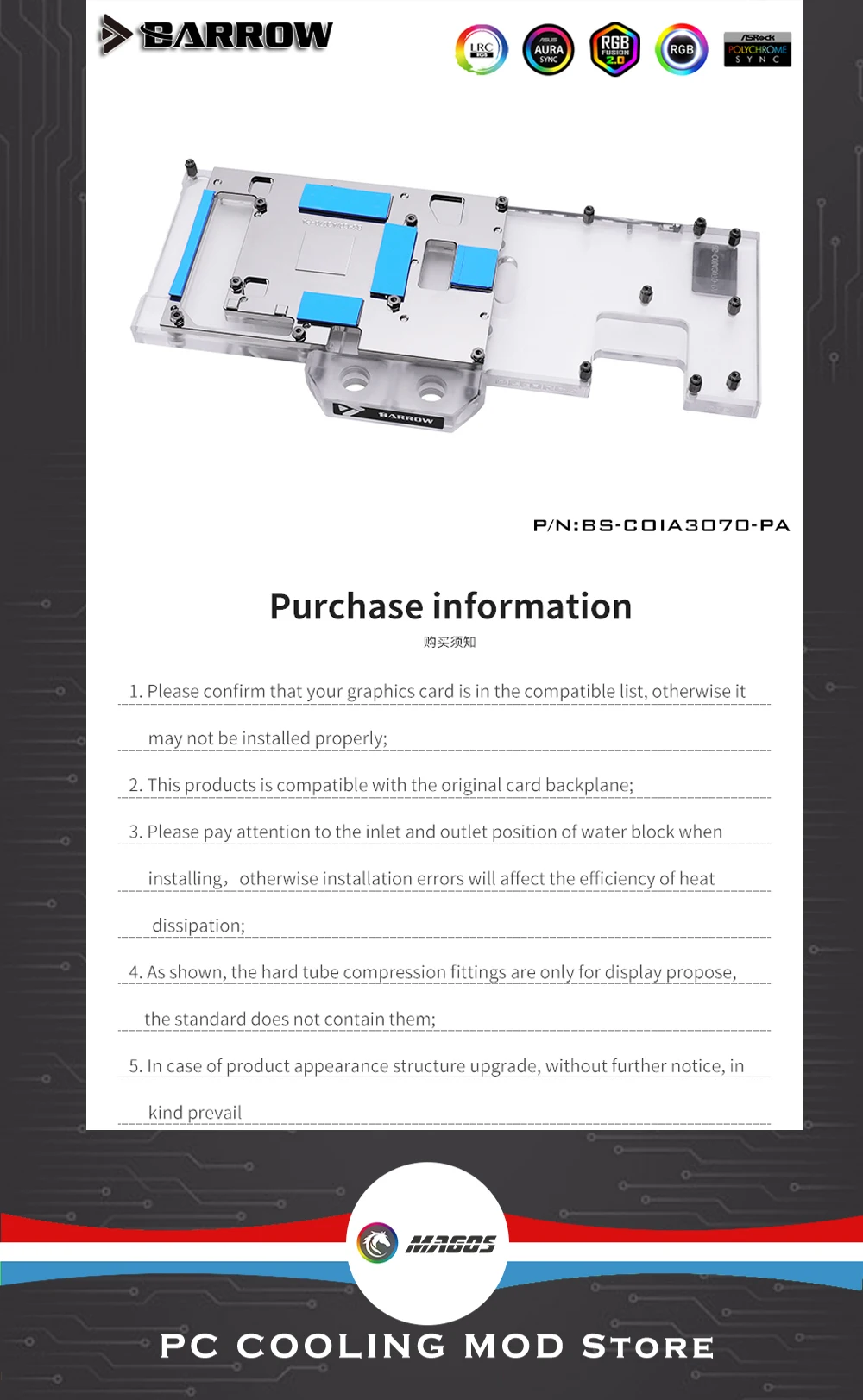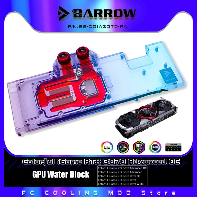 Comprar Barrow-Bloque de GPU para tarjeta gráfica, cubierta completa, 5V, ARGB, BS-COIA3070-PA de sincronización, para iGame RTX 3070 Advanced / Ultra OC