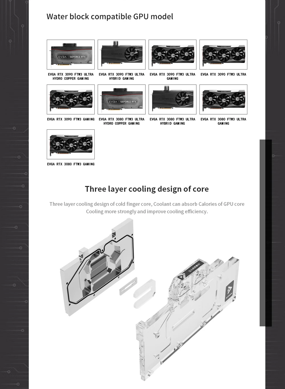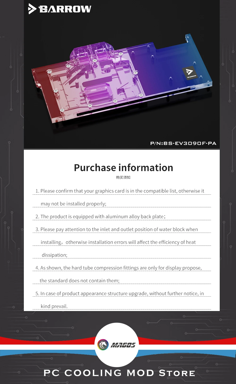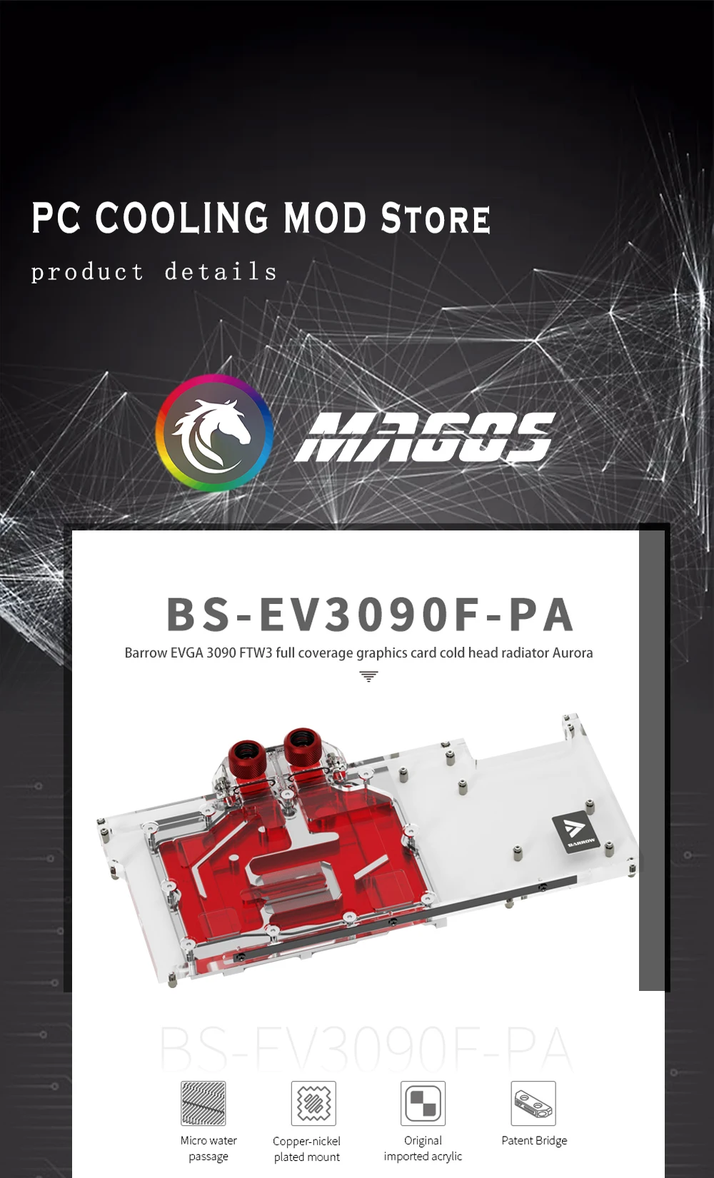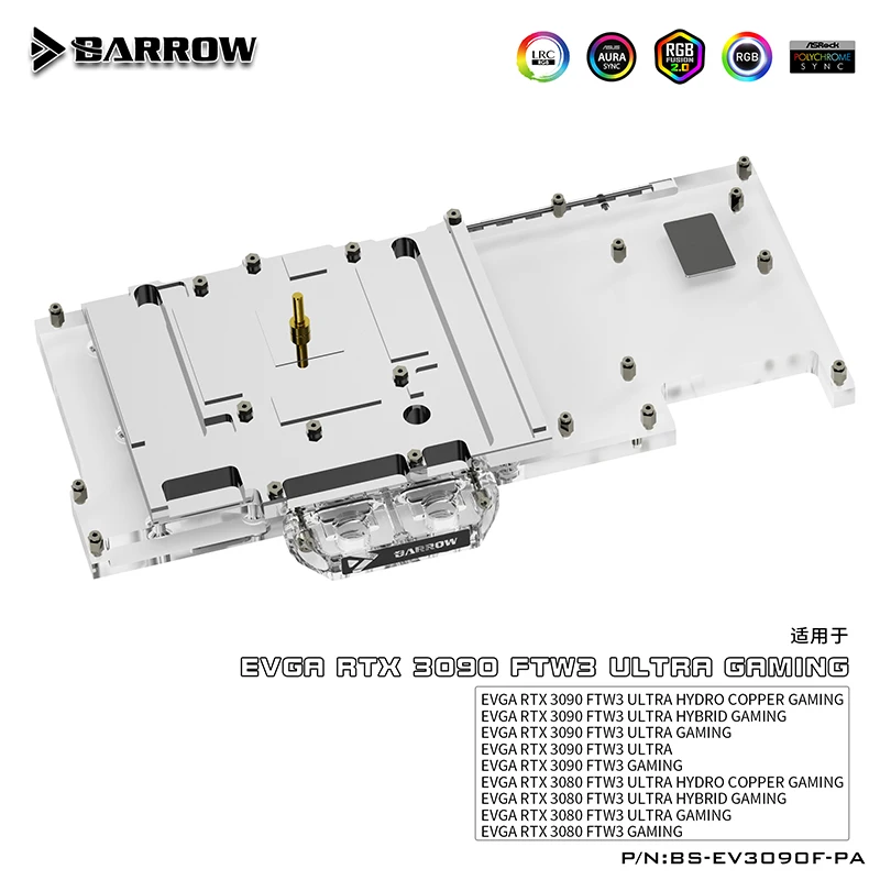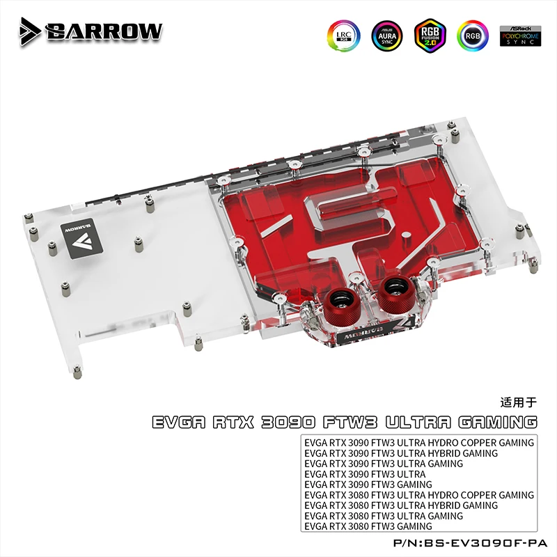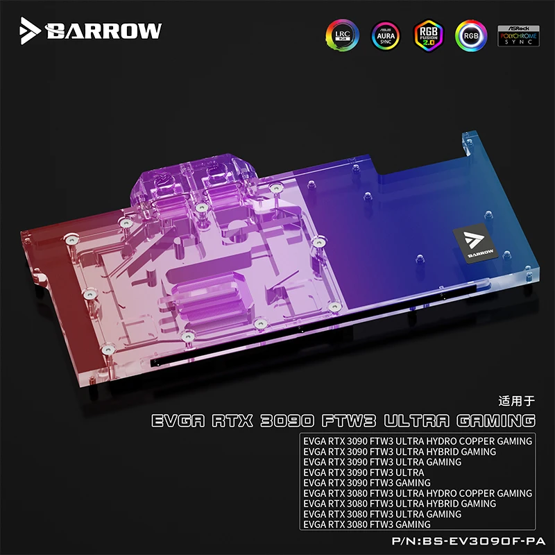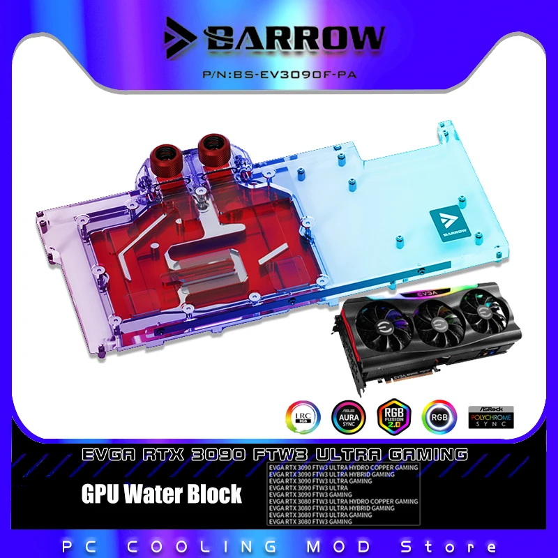 Comprar Barrow-Bloque de placa trasera activa GPU para EVGA 3090 FTW3 /3080, ULTRA HYDRO COPPER, memoria para juegos, enfriador VGA, BS-EV3090F-PA de 5V