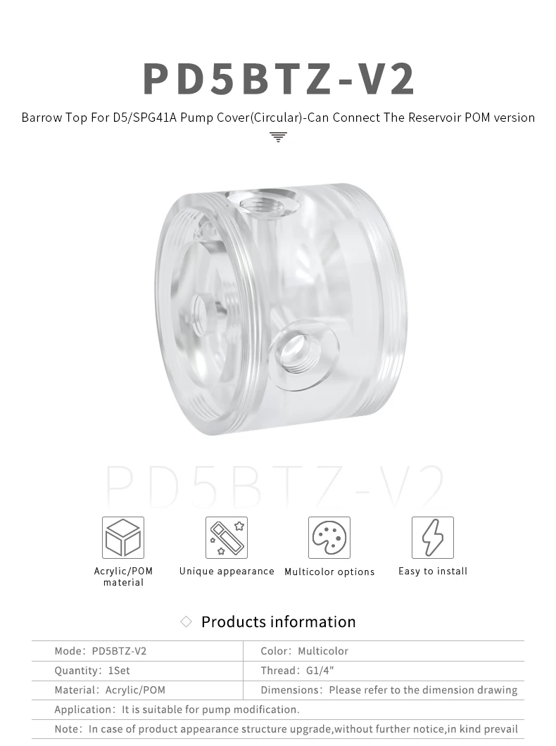 Comprar Barrow-bomba de agua acrílica de YKD5BTZ-V2 / PD5BTZ-V2 POM/PMMA, bomba de serie D5/MCP655, refrigeración por agua para ordenador