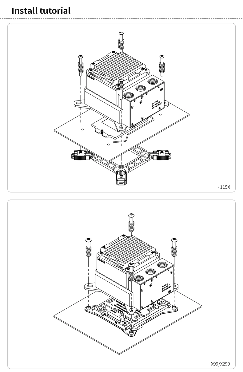 5. Al instalar el bloque de agua, los tornillos de fijación deben instalarse en diagonal;