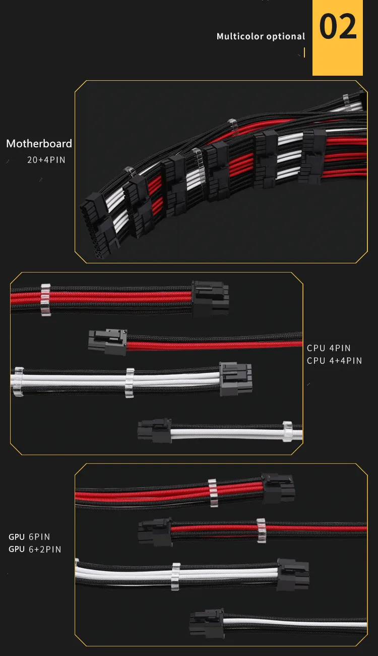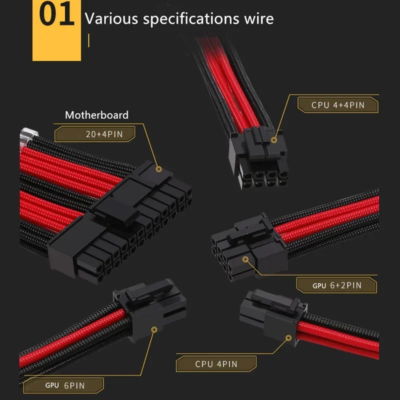 Comprar BARROW Case ATX 24PIN 18AWG Cable de extensión de alimentación GPU (6+2) CPU de 8PIN(4+4)8PIN