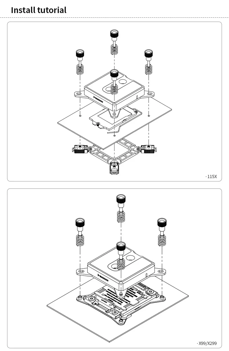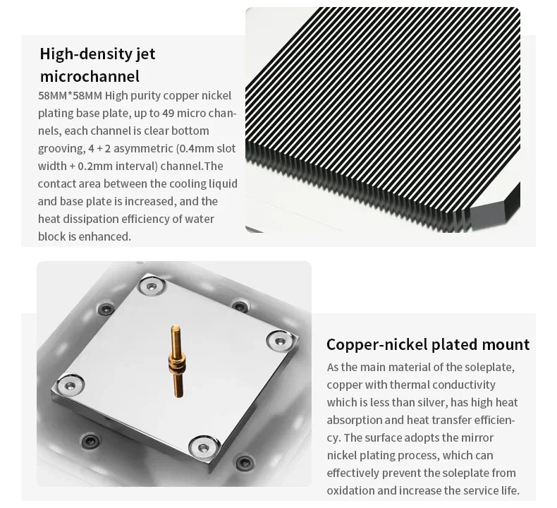 4.Al instalar, preste atención a la posición de entrada y salida de los bloques de agua, los errores en la instalación afectarán la eficiencia de disipación de calor;