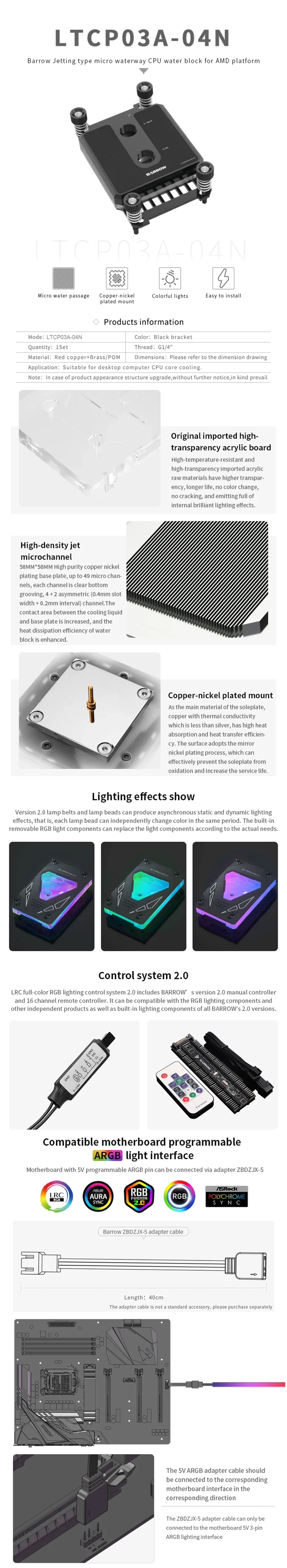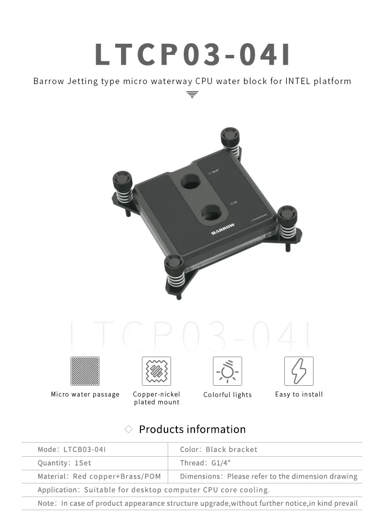 Comprar Barrow CPU bloque enfriador para Intel LGA-115X 1700 5V 3Pin A-RGB alta densidad Jet Micro-Waterway refrigeración por agua LTCP03-04I