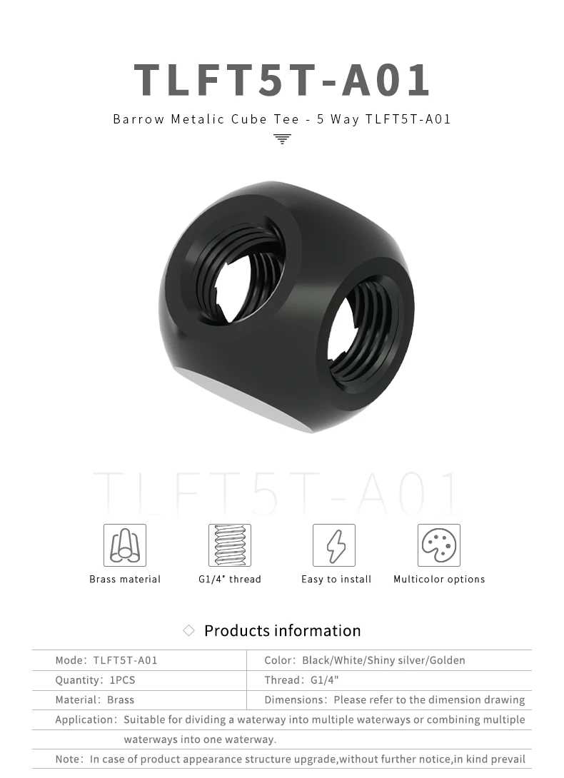 Comprar Barrow G1/4 "asiento adaptador cúbico de 5 vías accesorios de computadora de refrigeración por agua TLFT5T-A01
