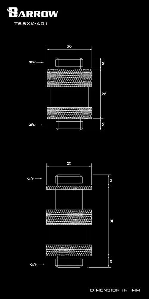 Comprar Barrow G1/4 "macho a macho conector de accesorios de bloque GPU, extensor de 22-31mm, accesorios de tarjeta GPU doble, TSSXK-A01
