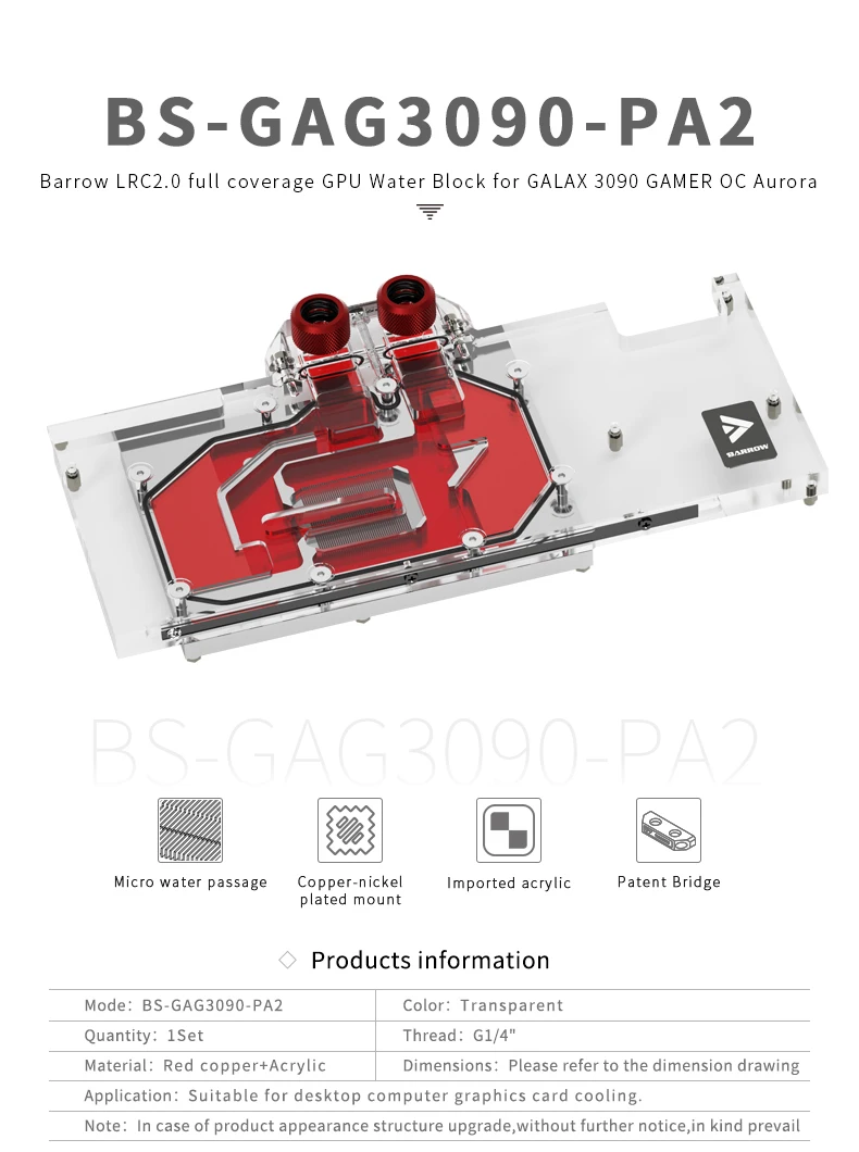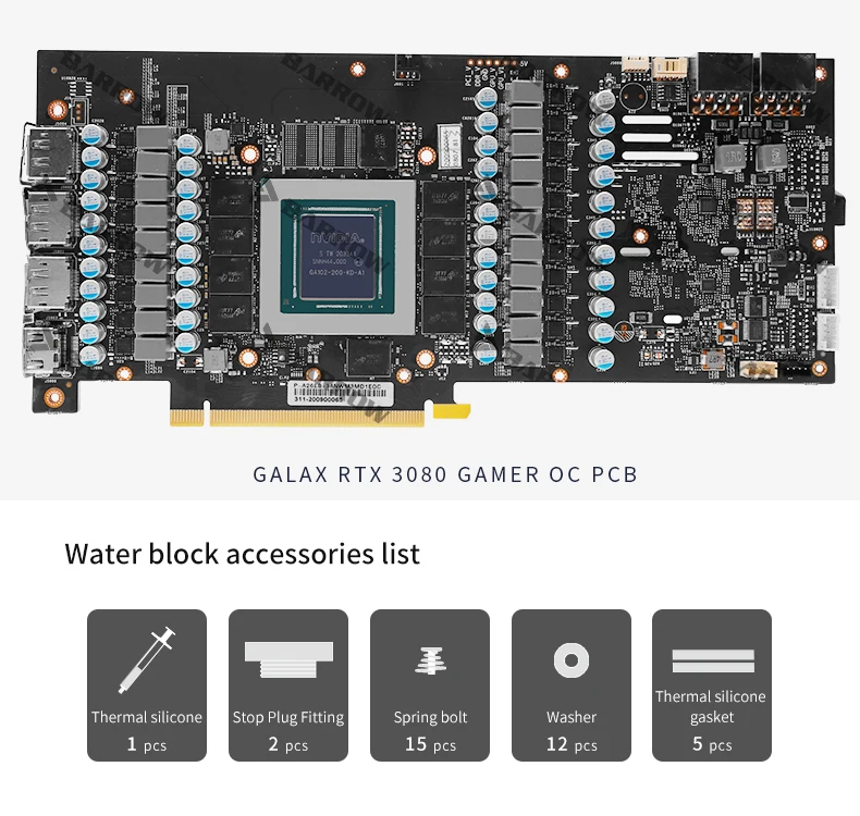 Comprar Barrow GPU bloque de agua para GALAX 3090/3080 Ti GAMER OC enfriador de tarjeta gráfica 5V ARGB 3PIN AURA SYNC BS-GAG3090-PA2
