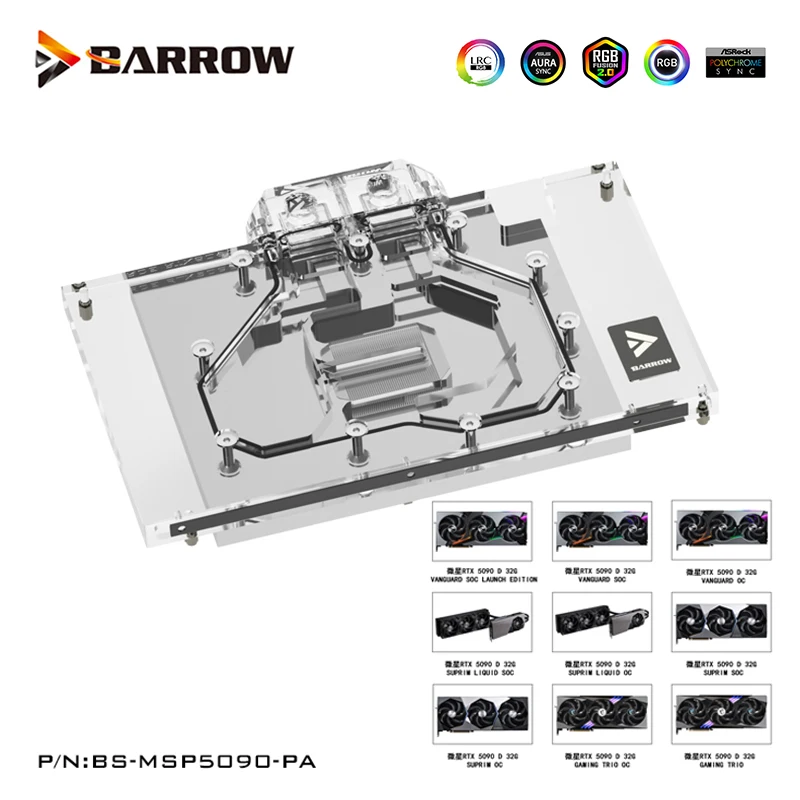 Comprar Barrow GPU bloque de agua para MSI RTX 5090 D 32G GAMING TRIO,SUPRIM LIQUID OC,VANGUARD SOC lanzamiento tarjeta de edición enfriador, BS-MSP5090-PA