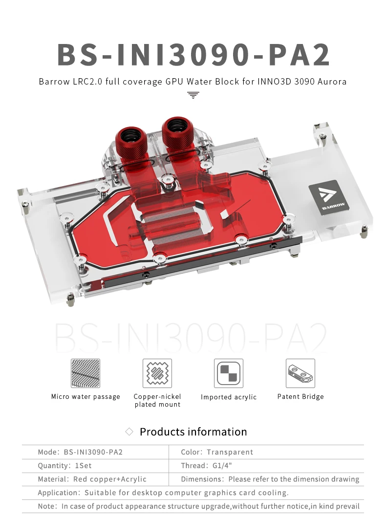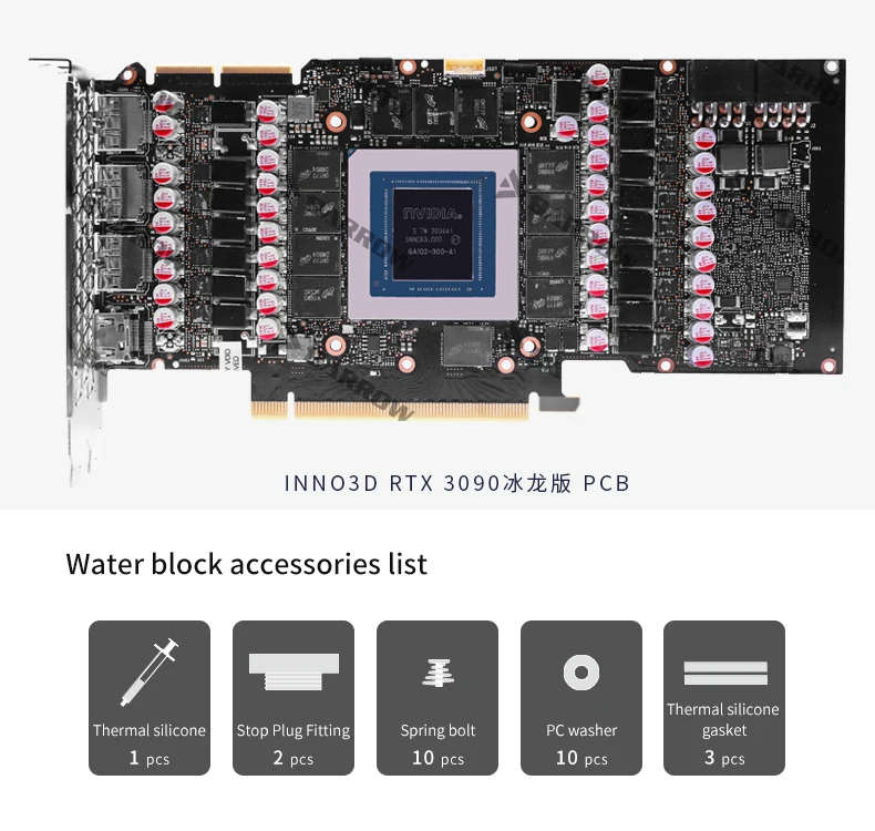 Barrow-INNO3D RTX 3090 Ice Dragon, bloque de agua GPU de cobertura completa, 5V ARGB, placa base de 3 pines AURA SYMC BS-INI3090-PA