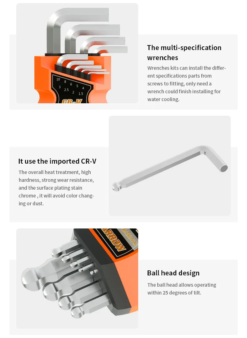 Kits Barrow CLJ9-D Inbussleutel Korte Bal hoodd Een Set Van 9 Moersleutel 1,5/2/2.5/3/4/6/8/10Mm