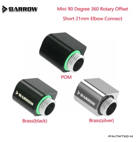 Comprar Barrow-MINI conector de codo de 21MM para ordenador, accesorio con ángulo de 90 °, 360 giratorio Offset, G1/4 ", corto, TWT90-M