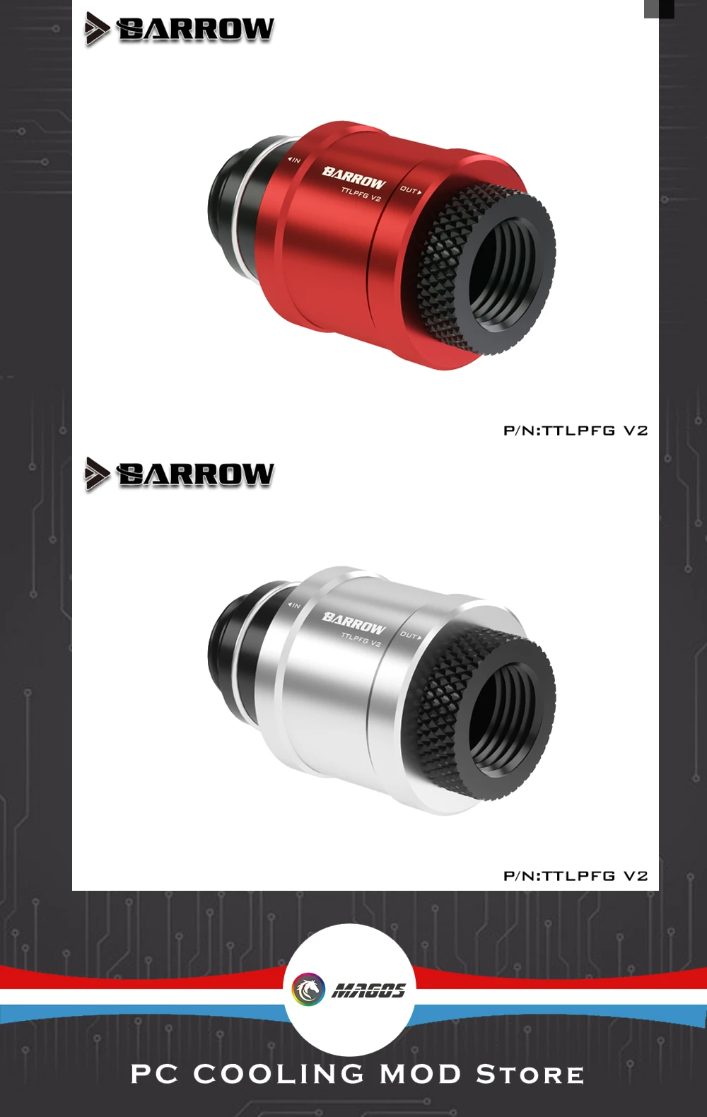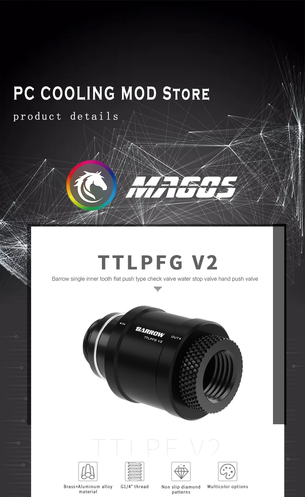 Barrow-Mini válvula de parada de agua G1/4, rosca M-F, interruptor de mano plano, sistema de refrigeración de Metal, ajuste TTLPFG V2