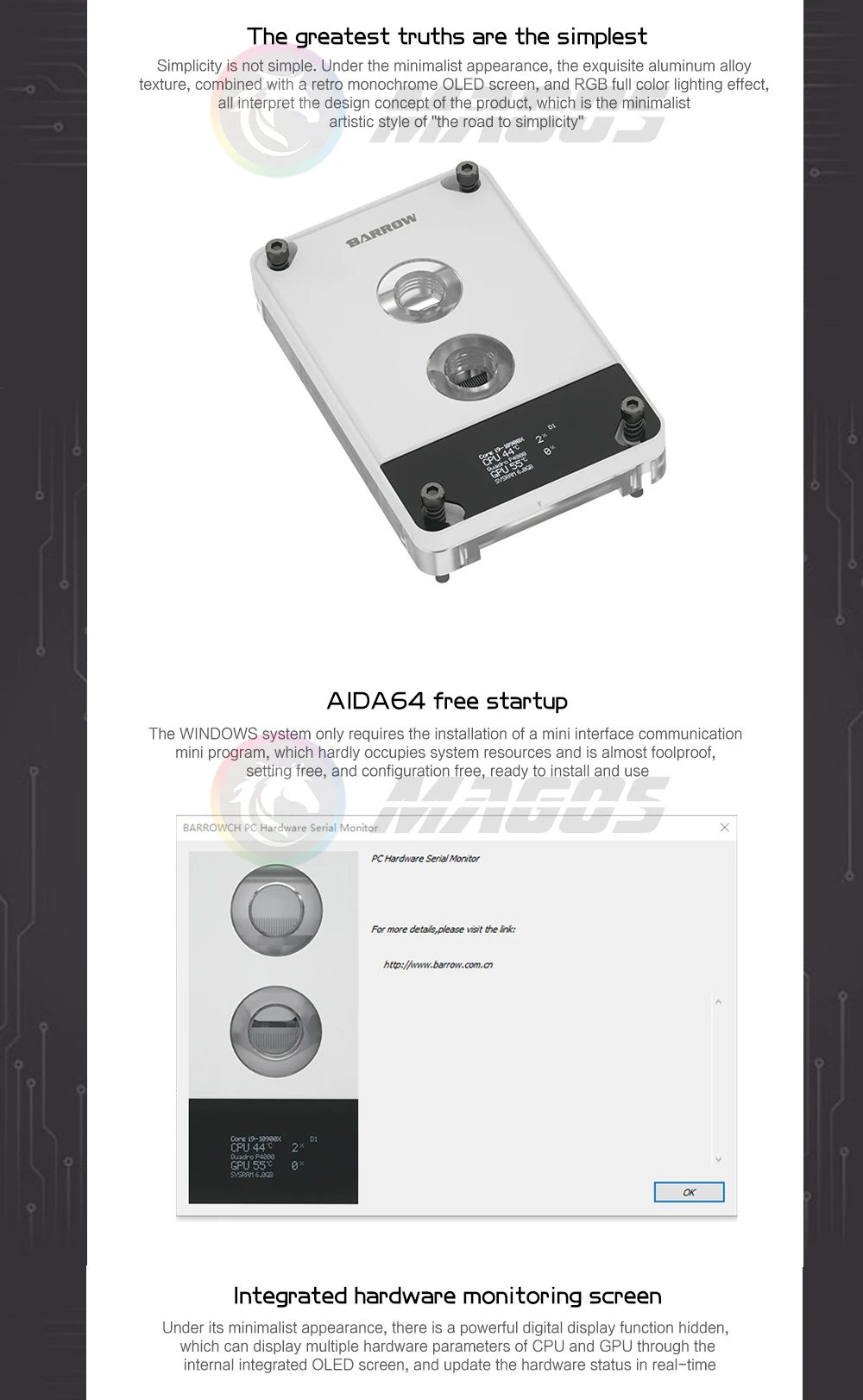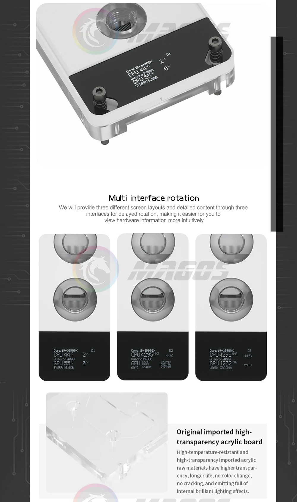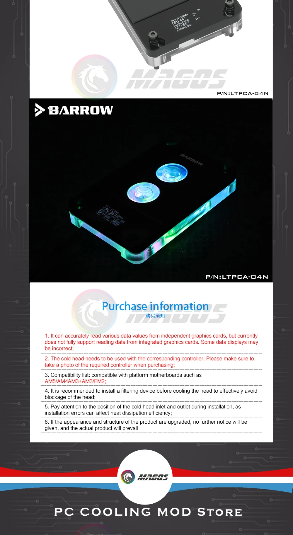 Comprar Barrow-pantalla de visualización de Monitor AM5 PC, bloque de agua de CPU, AIDA64 gratis para AMD Ryzen3/5/7 X470 5V MB, LTPCA-04N de sincronización RGB