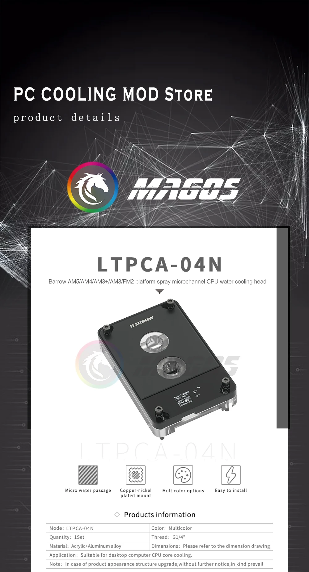 Barrow-pantalla de visualización de Monitor AM5 PC, bloque de agua de CPU, AIDA64 gratis para AMD Ryzen3/5/7 X470 5V MB, LTPCA-04N de sincronización RGB
