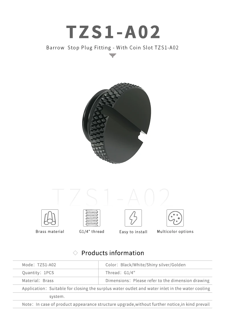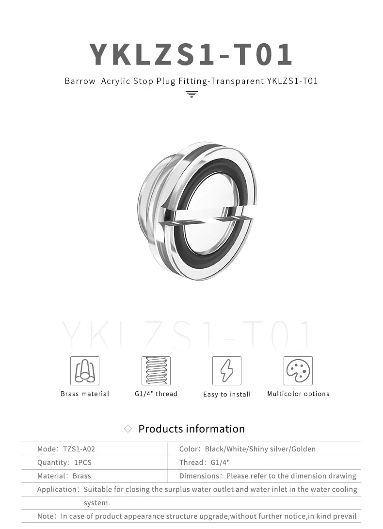 Barrow PC accesorios de refrigeración por agua tapón de parada de agua tornillo recto, disipador de calor de enfriador de giro manual negro/plata/blanco/oro TZS1-A02