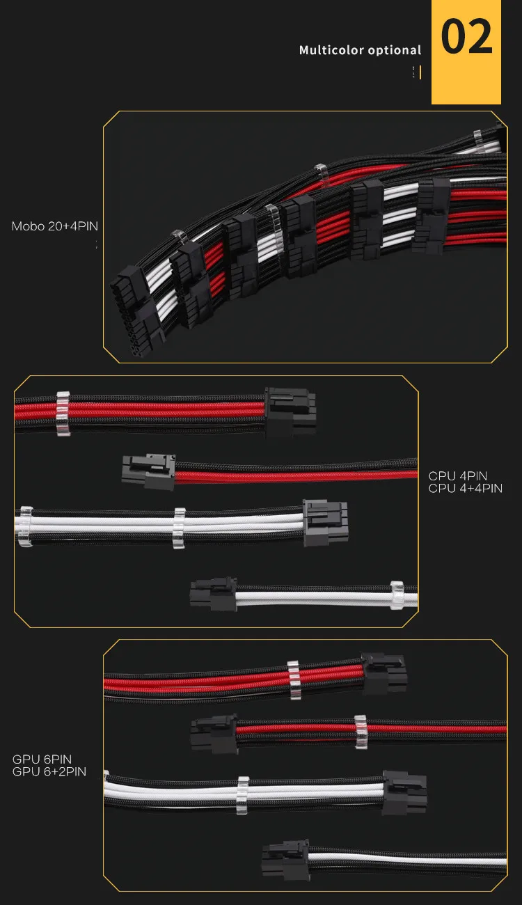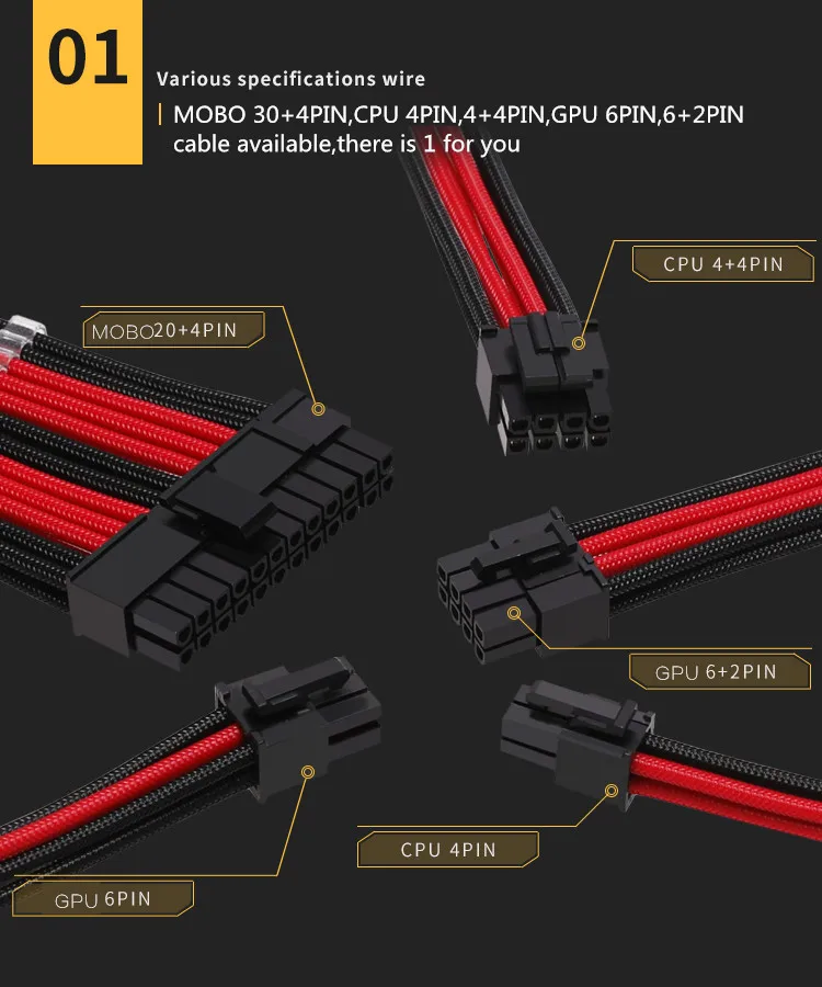 Comprar Barrow PC PSU Módulo Cable de extensión de alimentación 24 pines ATX GPU 6 + 2 pines CPU 4 + 4 pines 18AWG negro-blanco negro-rojo
