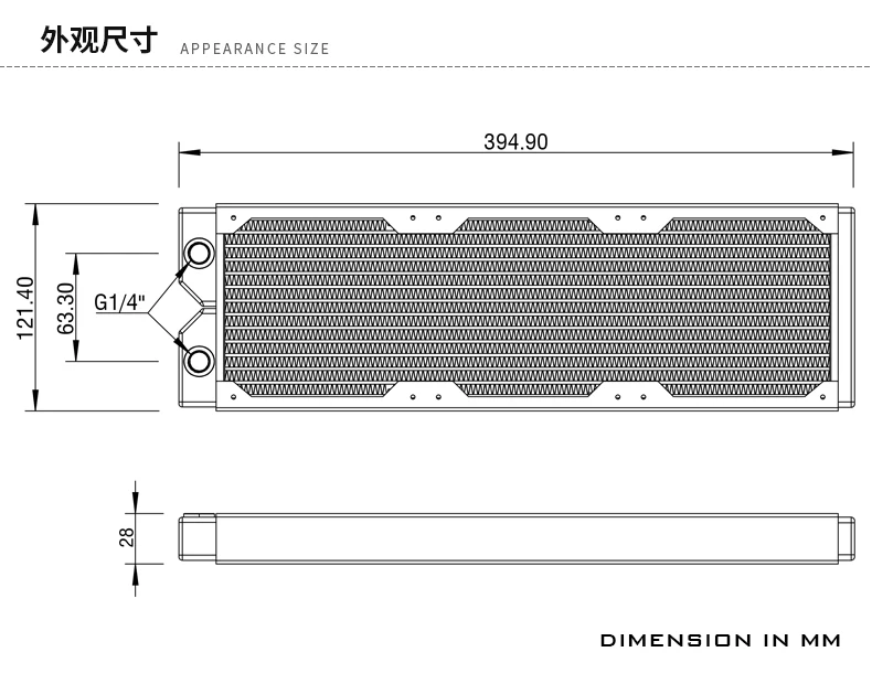 360MM dimensiones (largo x ancho x Alto): 394,9x121,4x28mm