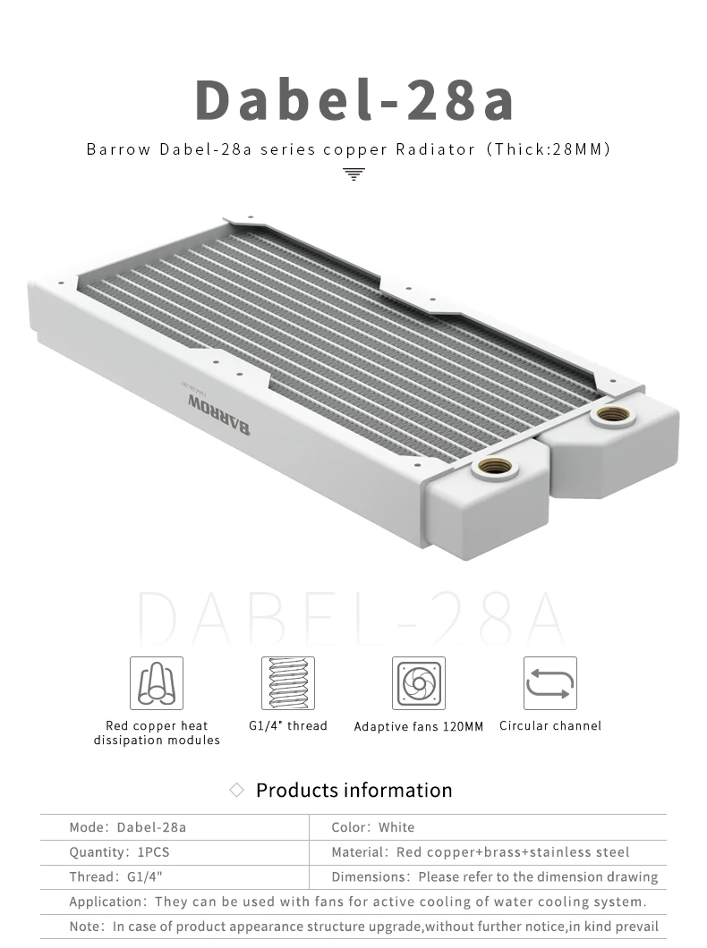 Comprar Barrow radiador refrigerado por agua de 360MM, disipador térmico de cobre de 240MM, 28mm de espesor, roscado G1/4 para enfriador de refrigeración por agua, ventilador de 120MM
