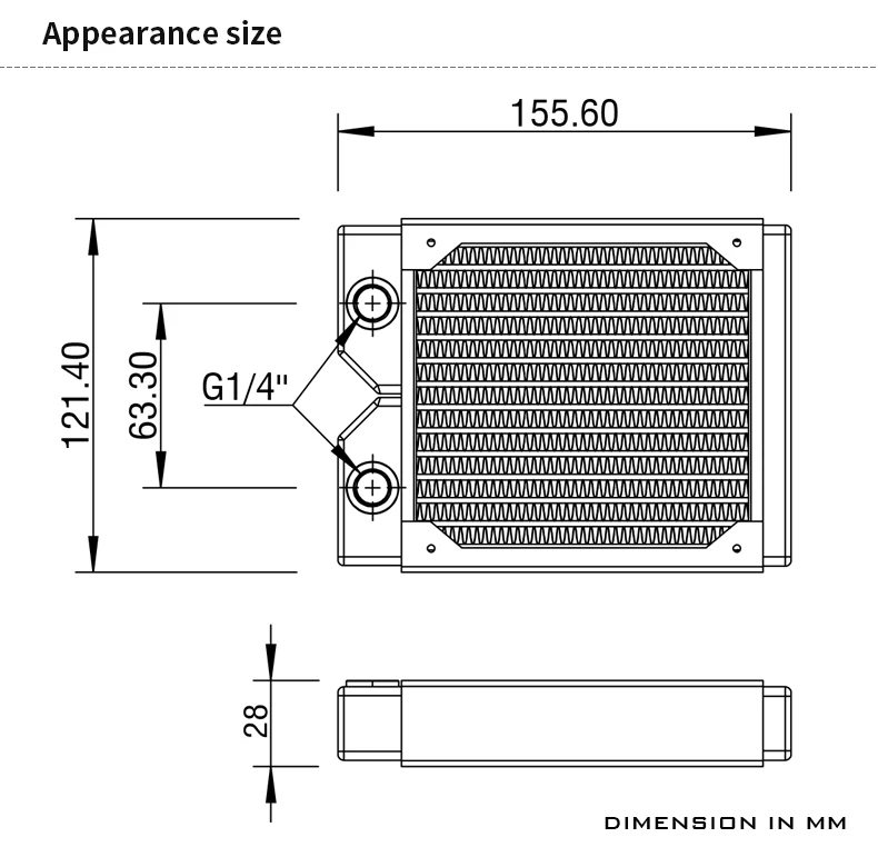 120MM dimensiones (largo x ancho x Alto): 155,6x121,4x28mm