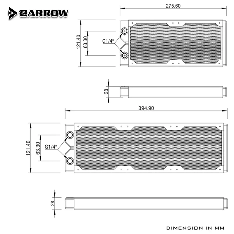 Comprar Barrow radiador refrigerado por agua de 360MM, disipador térmico de cobre de 240MM, 28mm de espesor, roscado G1/4 para enfriador de refrigeración por agua, ventilador de 120MM