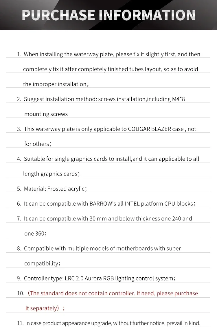 3. This product is only applicable to COUGAR BLAZER chassis and not applicable to other models of chassis;