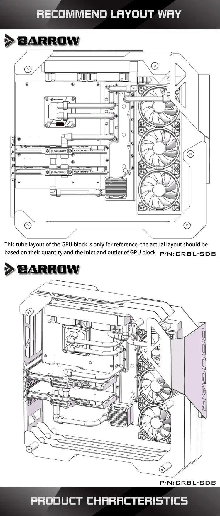 6. It can be compatible with one 240 and one 360 radiator each with a thickness of 30MM and below;
