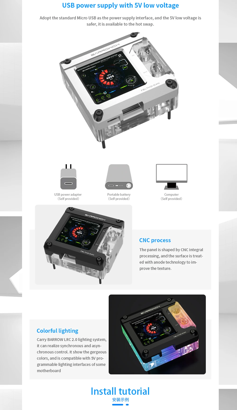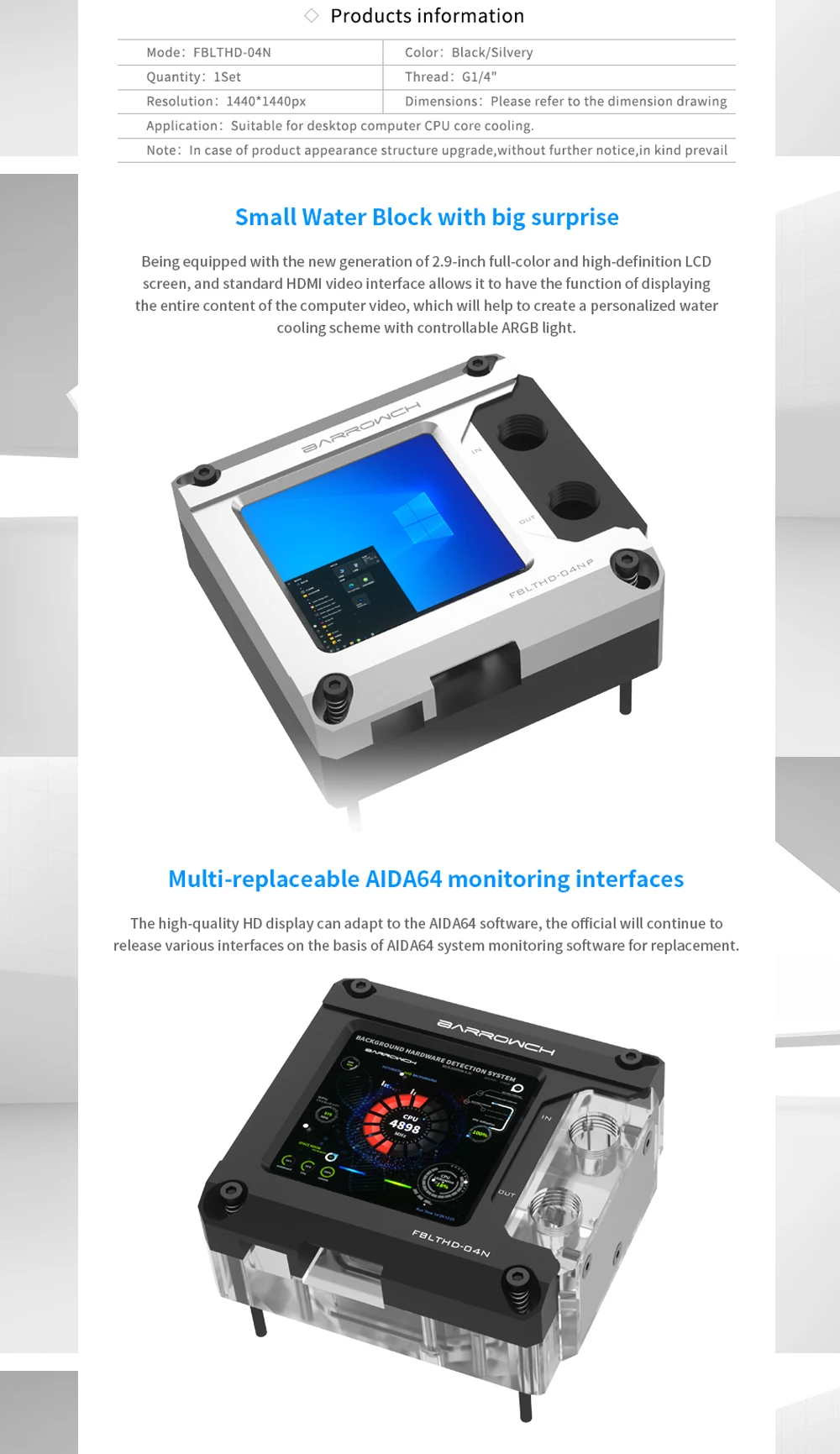 Comprar Barrowch 2,9 pulgadas 1700 bomba de bloque de CPU AM5 Aida64 pantalla HDMI Hardware de PC Control de monitoreo de trabajo para Mini ITX Case MOD