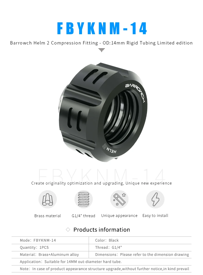 Comprar Barrowch-adaptador para sistema de refrigeración por agua, accesorio duro, serie Helm 2 para OD 14mm, FBYKNM-14