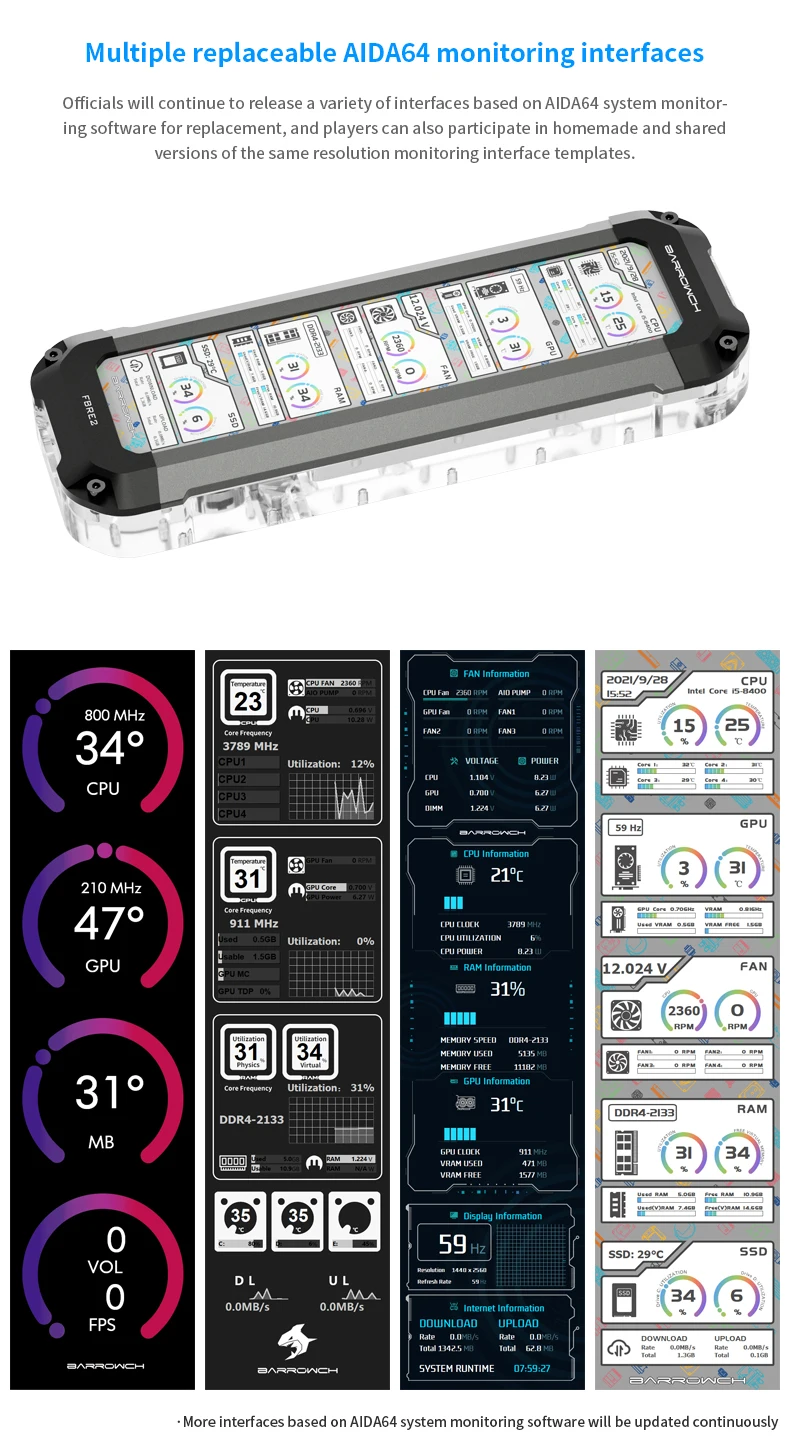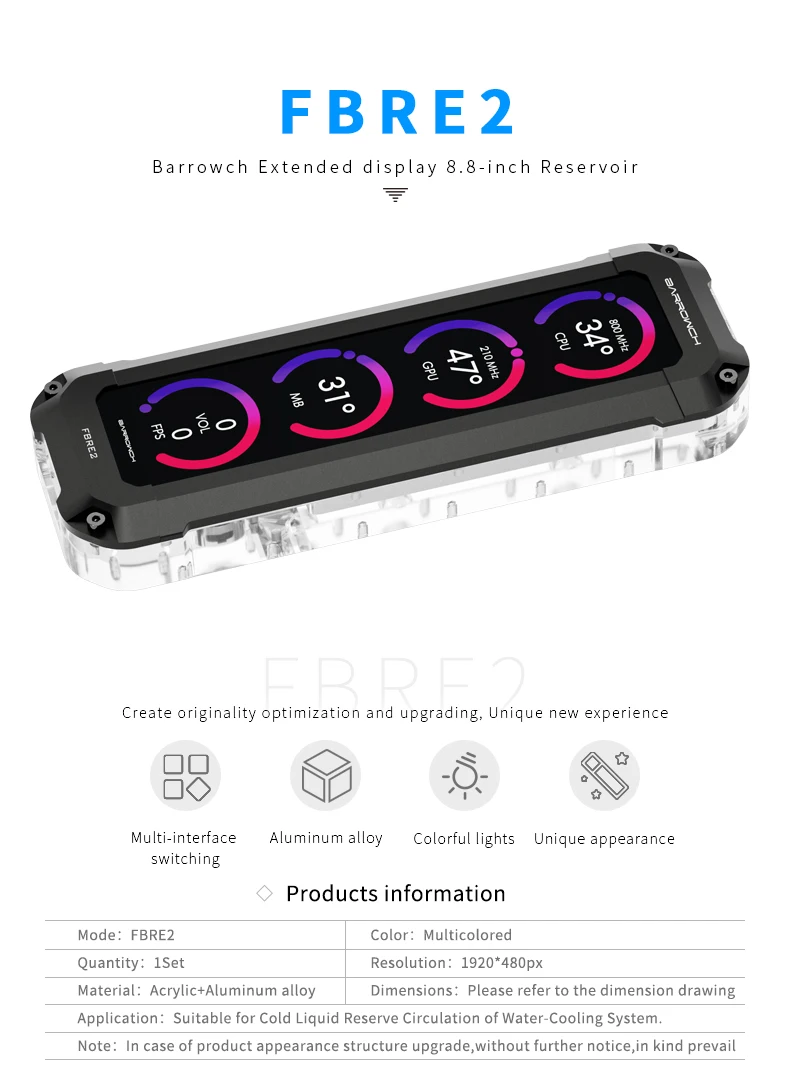 Comprar Barrowch AIO depósito + pantalla de visualización (8,8 pulgadas), tanque de agua MOD para construcción de sistema de refrigeración de agua DIY