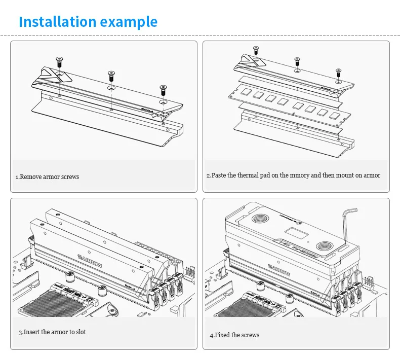 Comprar BARROWCH-bloque de agua RAM con pantalla de termómetro DDR5/4/3, Armadura de enfriador de memoria, soporte de 2 o 4 canales, cobre acrílico, FBRWB-PA V2A