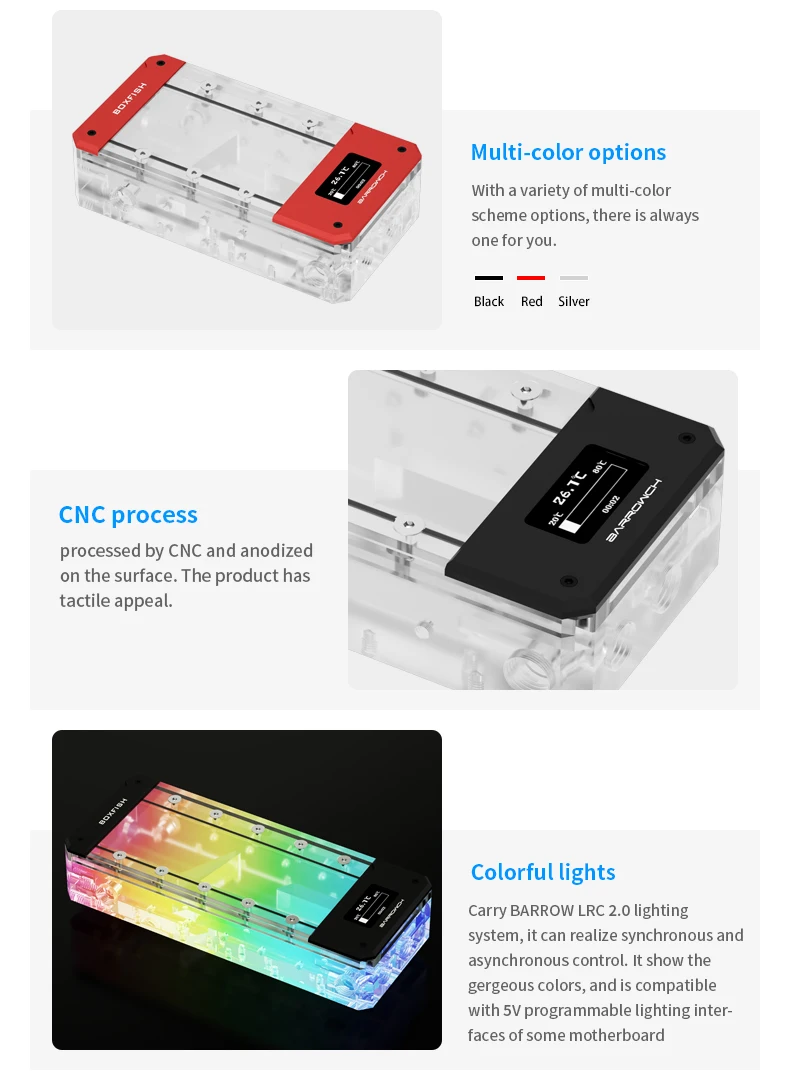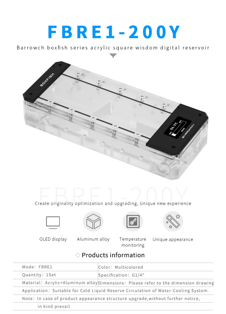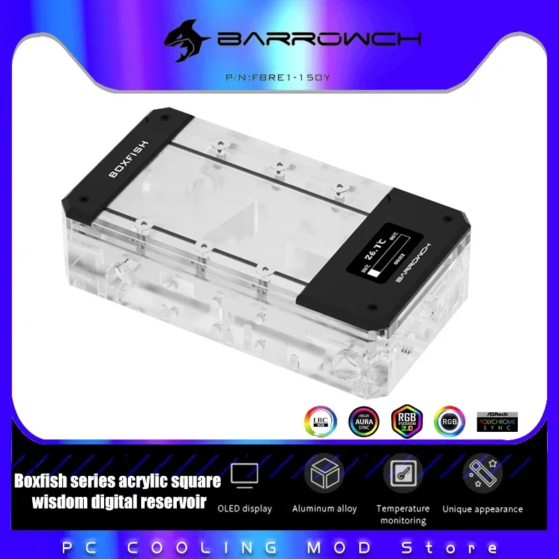 Comprar Barrowch Boxfish Series depósito cuadrado acrílico + termómetro con pantalla Digital OLED LRC2.0 5V 3PIN SYNC 150/200/250mm