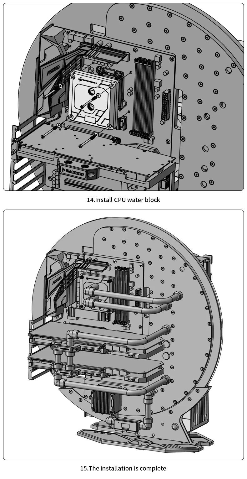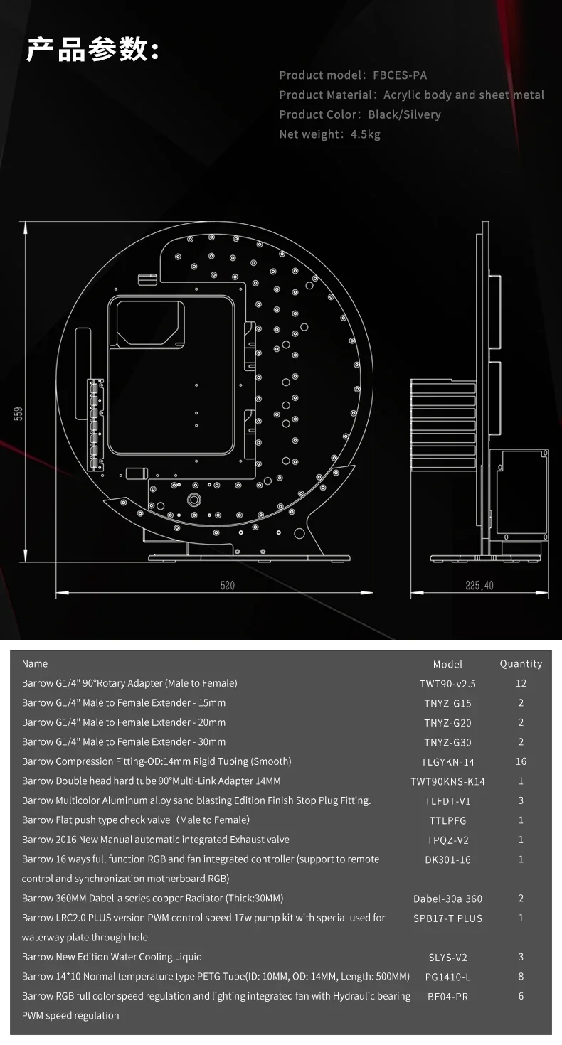 Barrowch Caja de juego enfriada por agua, chasis Circular de refrigeración por agua, Compatible con la placa base ATX / MATX / ITX FBCES-PA