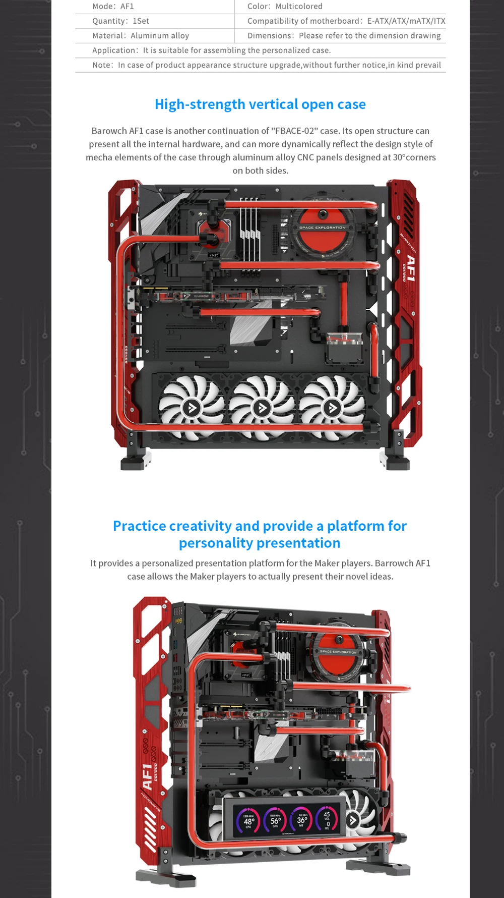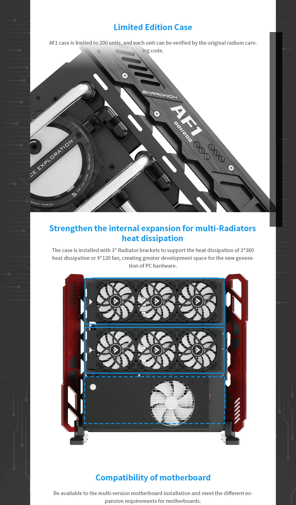 Barrowch-funda de copiadora de aleación de aluminio para EATX/ATX/mATX/ITX, edición limitada, fila múltiple fría, refrigeración por agua, PC, chasis abierto DIY